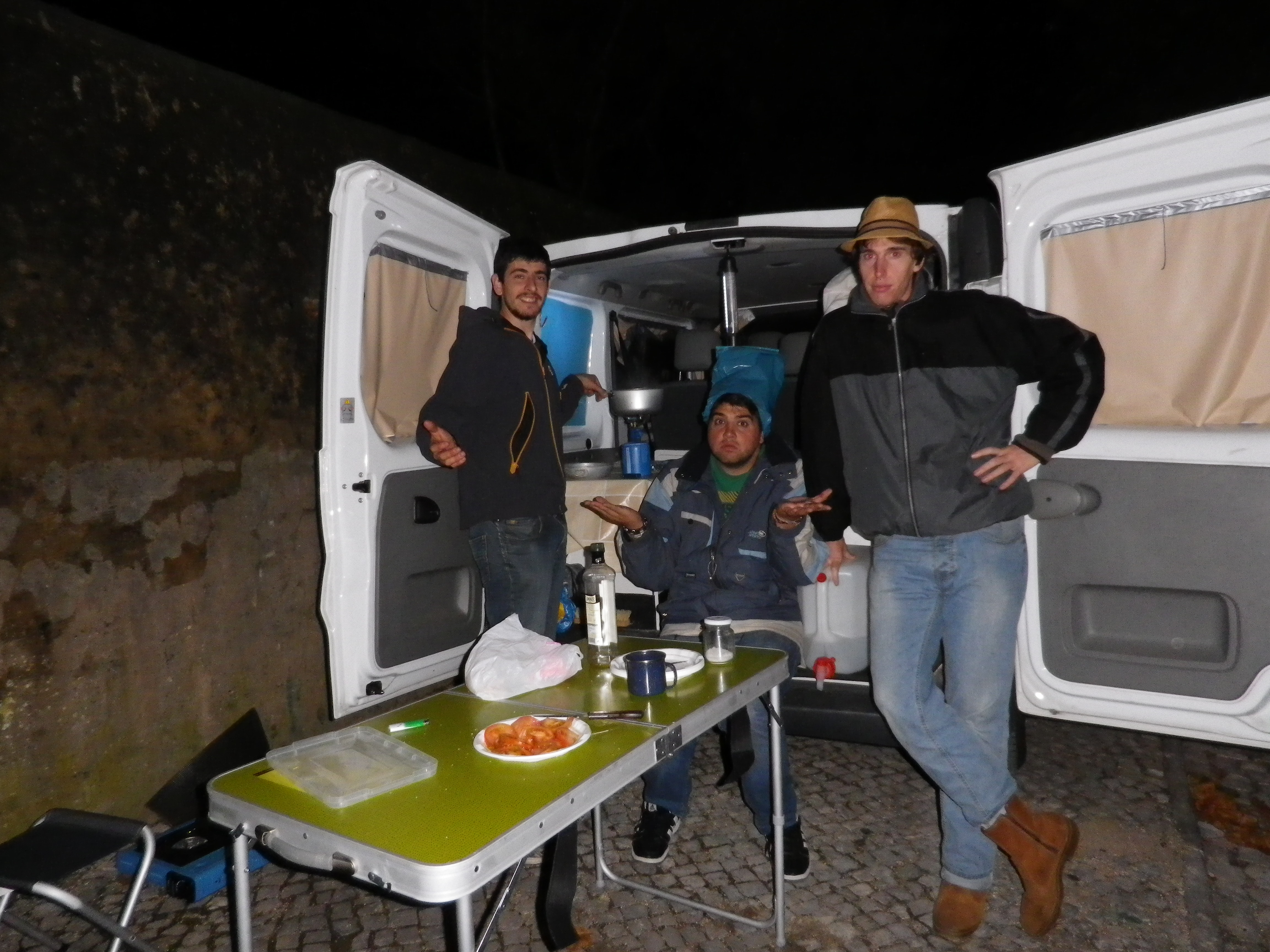 Al día siguiente seguimos rumbo sur, cruzando el puente de Salazar, que recuerda al Golden Gate de San Francisco. Conoceríamos Portinho da Arrabida en el parque natural de la Arrábida y después cruzamos con la furgoneta en un ferry a la península de Troia, íntegramente formada de arena, donde nos pegamos un chapuzón en las frescas aguas del Atlántico. En Sinse paramos a dar una vuelta por su puerto pesquero jalonado por cientos de gaviotas. Como si de estos pájaros se tratase, tras charlar un rato con un pescador entrado en años fuimos obsequiados con tres lenguados recién pescados y que convirtieron el siguiente objetivo del viaje en encontrar un buen sitio para freírlos. Y este sitio fue Zambujeira do Mar en el Alentejo, en una cala desierta de gente. Esa noche contemplamos un precioso atardecer frente al mar que nos sirvió de postre a los pescados recién fritos de hacía unos minutos.