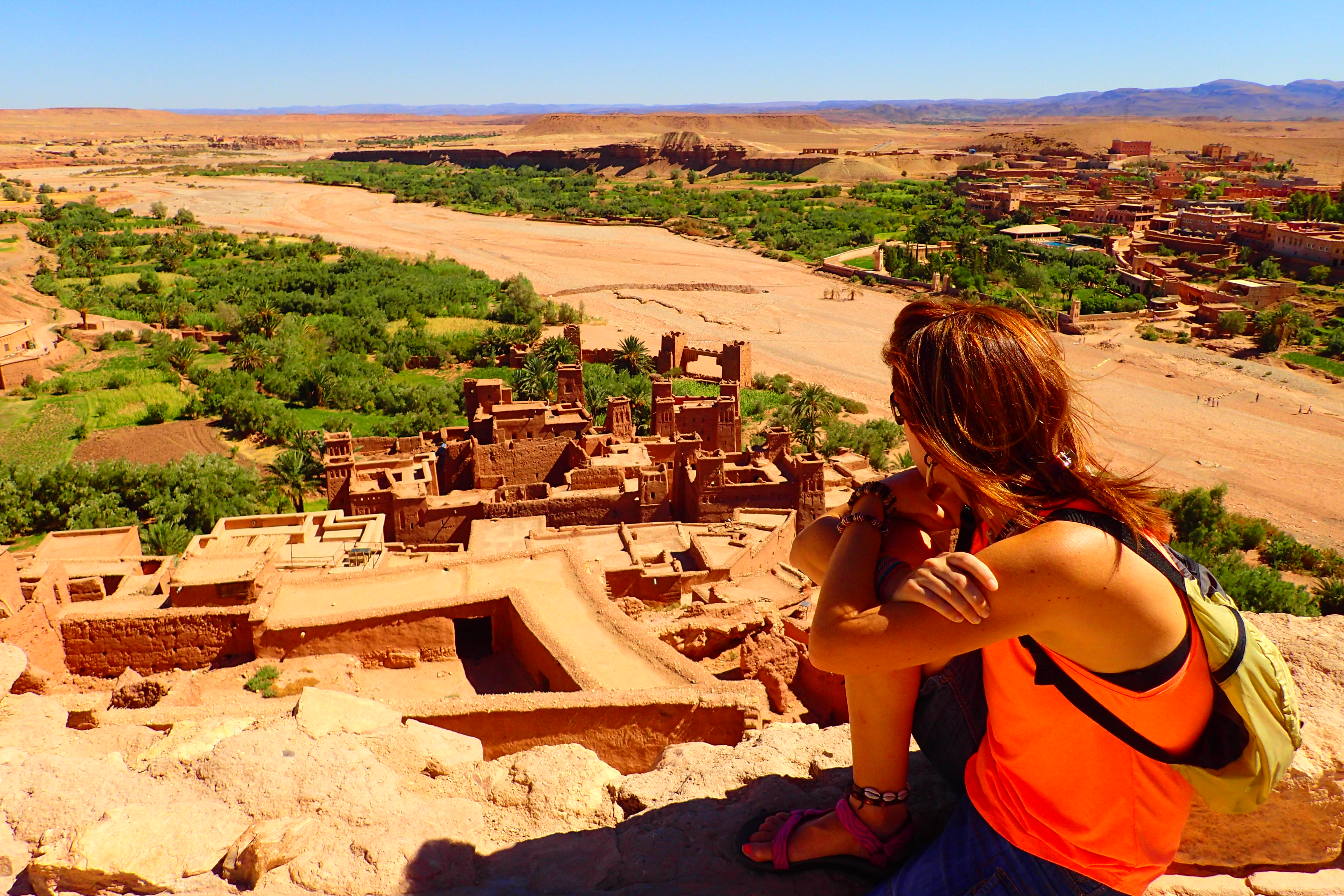 Bea en la kasbah de Ait Ben Haddou, edificio fortificado de origen bereber, lugar donde se han rodado películas como Gladiator o Lawrence de Arabia