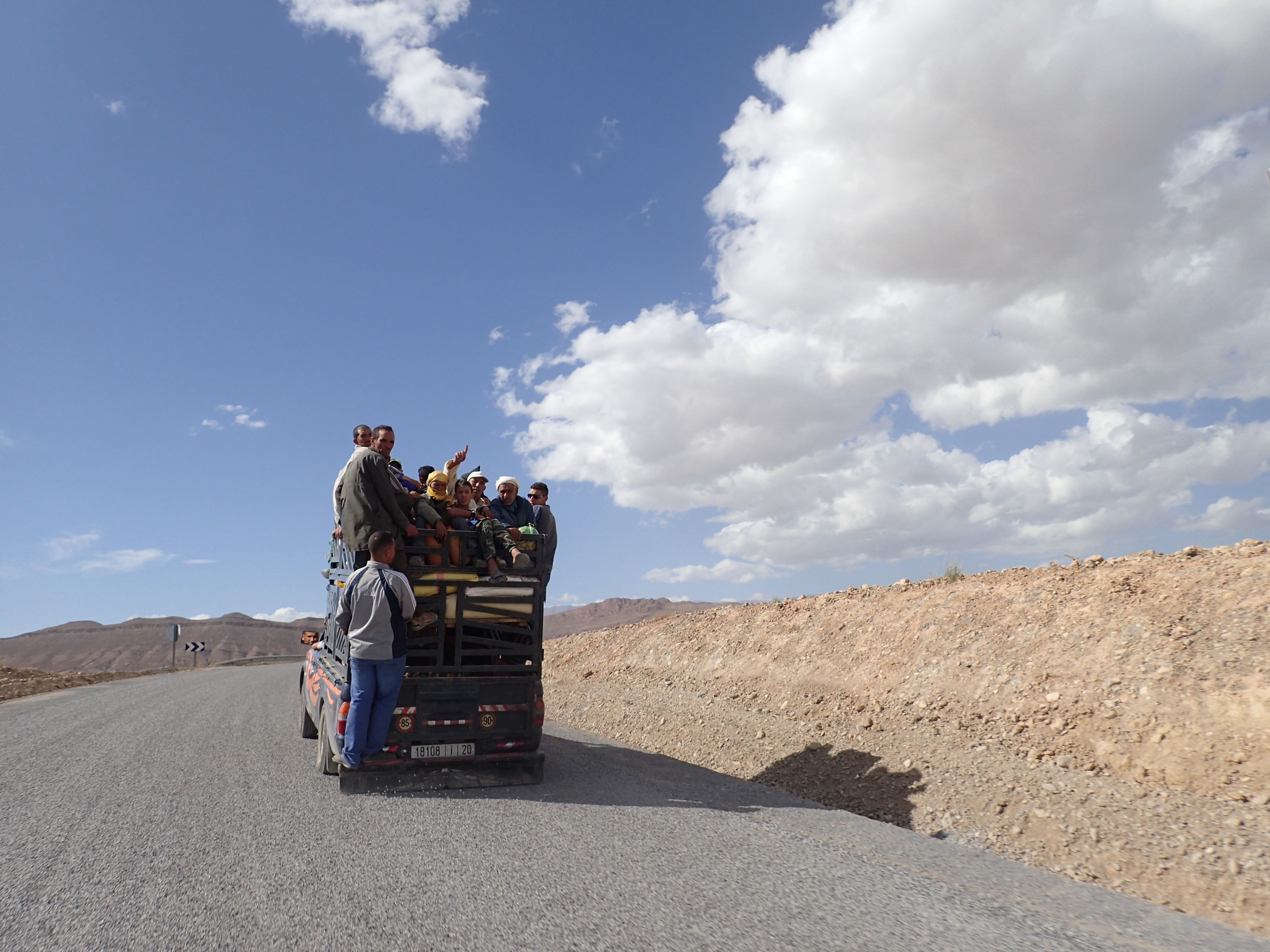 Carretera interior del Atlas. Es increíble la marcha que lleva la gente en estos vehículos en los que tocan música para hacer menos pesado la lentitud del trayecto