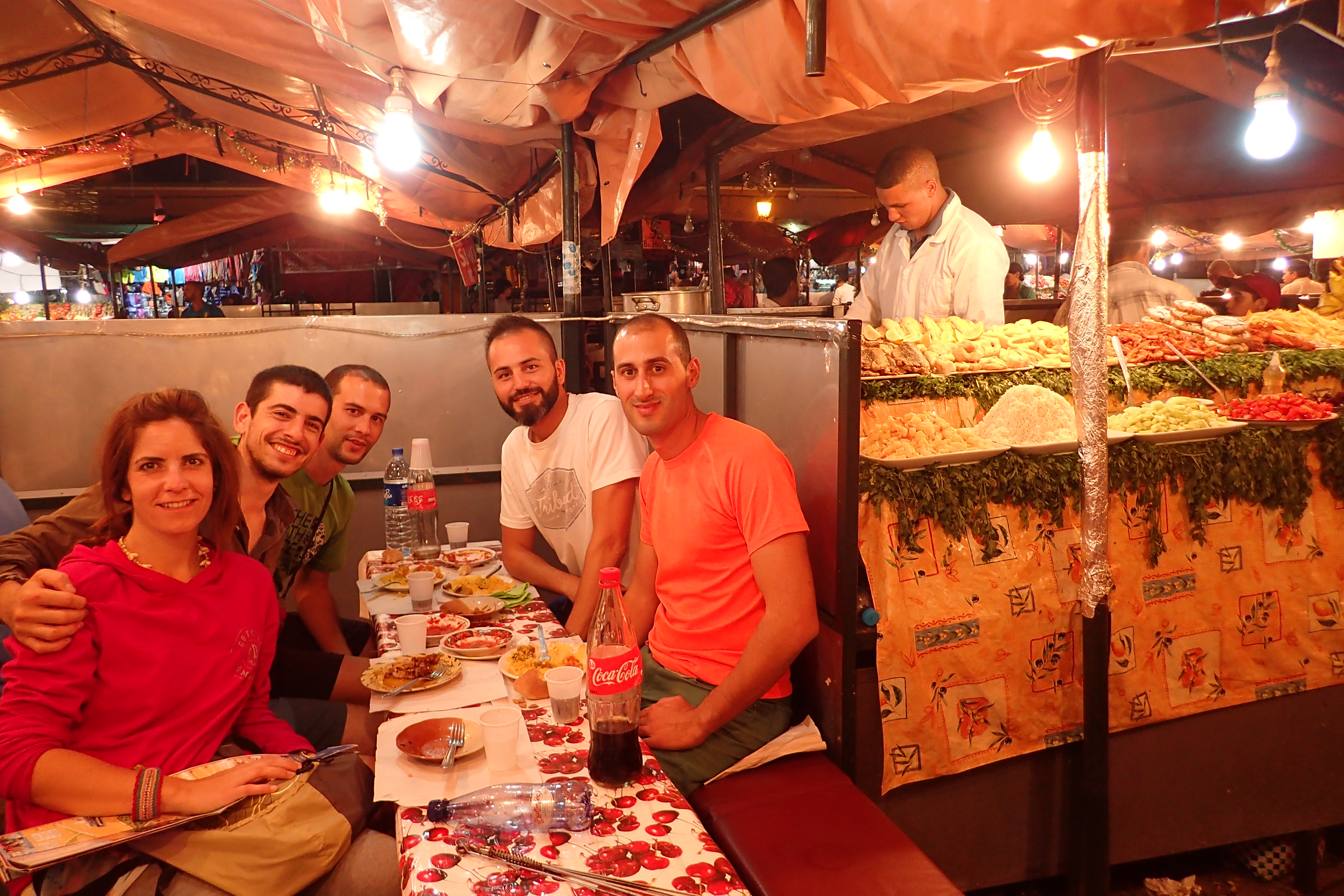 Los últimos dos días los pasamos en Marrakech conociendo sus rincones, regateando objetos en su zoco, sufriendo el hedor de sus curtidores de cuero, e hipnotizándonos con sus especias. Mientras cenamos con nuestros amigos de Calpe en la plaza que nunca duerme, nuestros pensamientos recuerdan las sensaciones, experiencias, lugares y gentes que hemos tenido la suerte de vivir estos últimos días en nuestro vecino Marruecos.