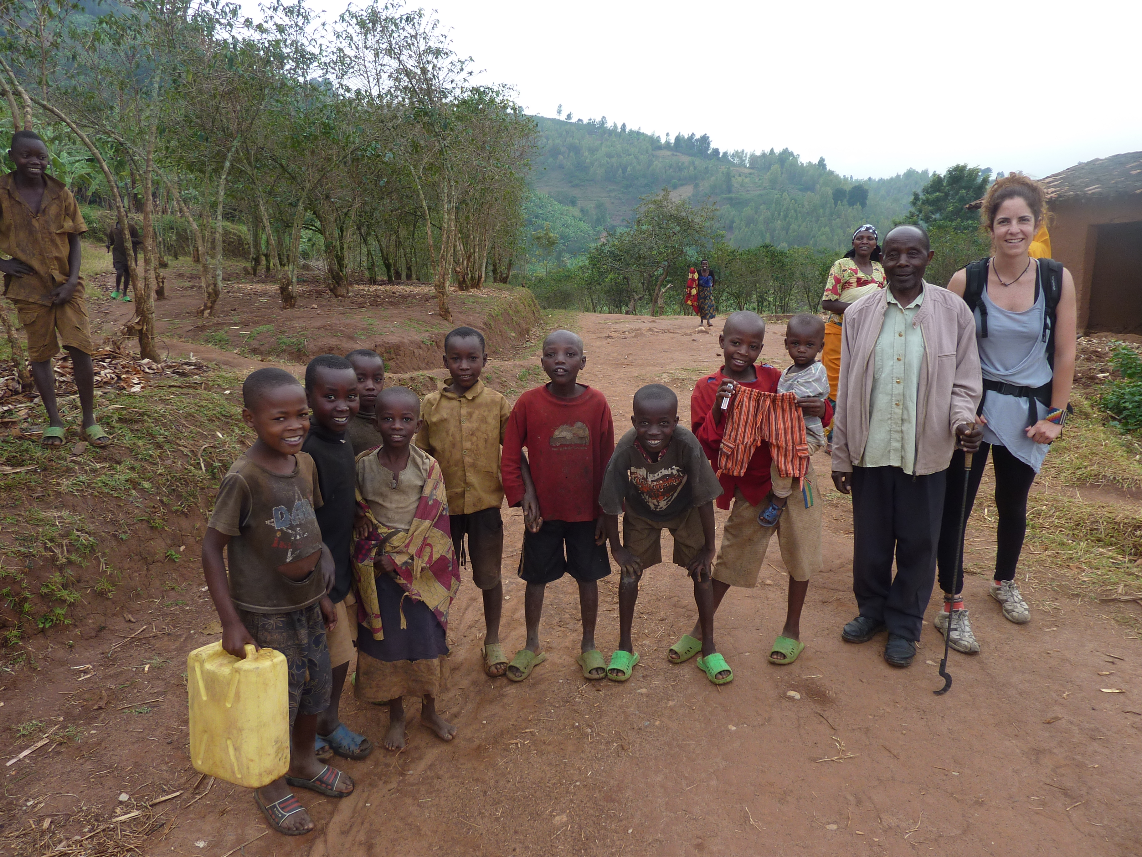 Los niños y no tan niños bajaban de las laderas chillando emocionados «muzungu» (blanco), dándonos la mano, Congo Nile Trail, Ruanda