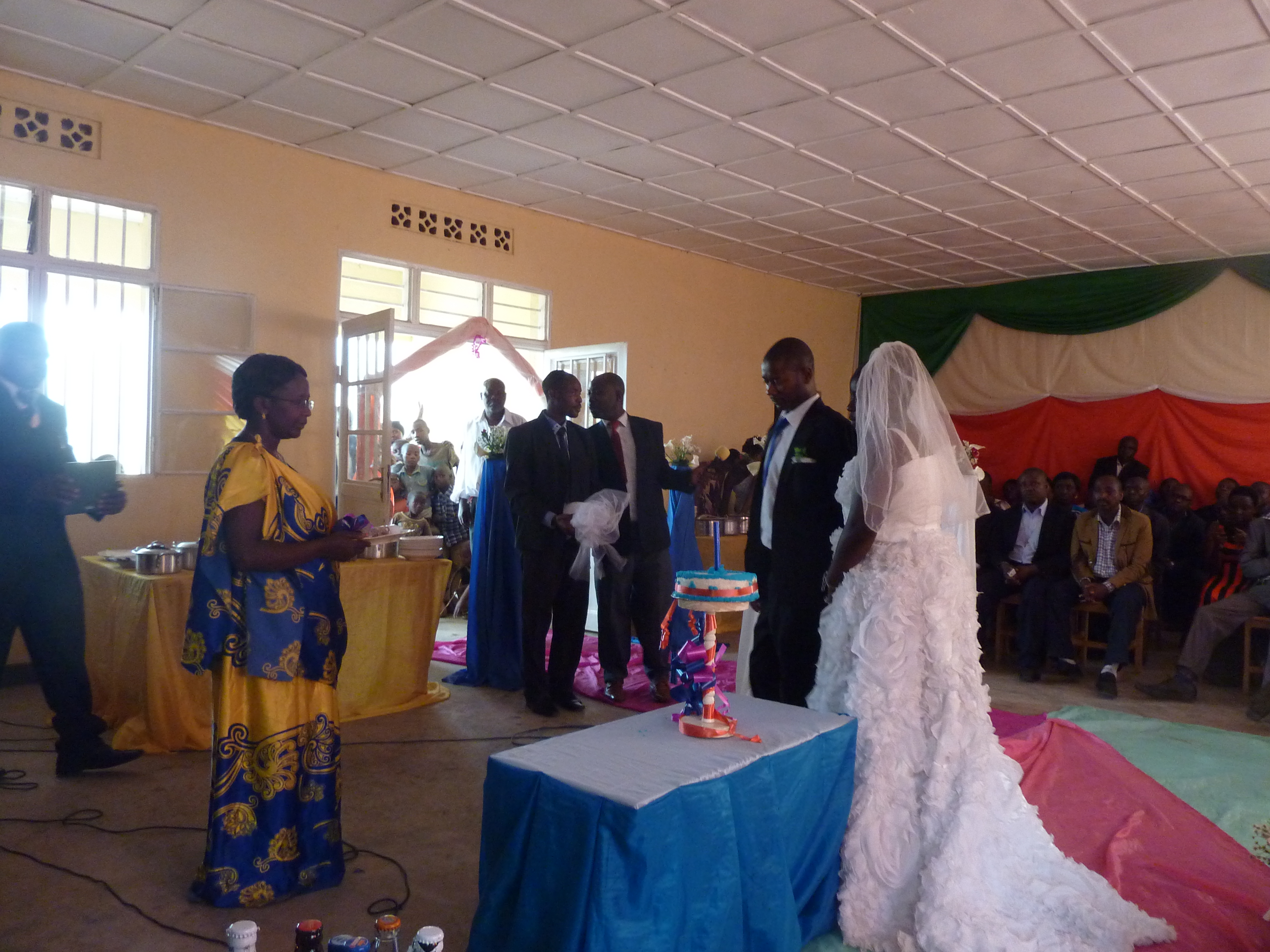 Esa misma tarde asistimos a una boda en la iglesia en la que nos miran más que a los novios. Tanto es así, que François, el cura, nos invita al banquete. Por un fallo en la previsión de cambiar dinero, solo tenemos unos 10 euros para dos personas para los próximos tres días, así que una oportunidad de conocer cómo es una boda ruandesa y tengo que reconocerlo, de comer caliente, no se puede desaprovechar. Somos los invitados del cura, que después sabremos es el hermano del novio, y eso significa estar en primera fila junto a los novios en la casa que han alquilado para el evento. A la ceremonia religiosa se sucede la ceremonia tradicional, en la que se realiza la petición de mano de la novia. Unas cervezas calientes Primus nos ayudan a entender todo el evento con mucha más claridad, hasta que llega el momento en el que sacan las cazuelas. Los novios se sirven un plato de comida que comparten. El cura me susurra al oído, – Los siguientes sois vosotros-, una situación algo incómoda por comer antes que los demás asistentes, incluso de los padres de los novios. Ante una sala abarrotada de gente y de las miradas de los niños descalzos del pueblo, que se aglutinan en las puertas y ventanas por si se escapa algo de comida, me sirvo con delicadeza el menú del banquete: arroz blanco, alubias y patata cocida, unos pescados del lago Kivu más finos que colas de lagartija y un trozo de ternera. Respecto a ésta última, será la ocasión anual en la que los asistentes probarán su recio sabor, ya que según nos dicen es la mejor boda del año y en esta zona la gente no come carne en muchos meses. Conforme va anocheciendo y las cervezas vaciando, compartimos bailes levantando las piernas y saltando al son de su música, hasta un punto en el que al no disponer de electricidad no se ve nada. François nos lleva a la casa de los curas, donde, sorpresas del destino disponen de un menú similar al del banquete de la boda (ternera incluida). Parece ser que no todos cumplen lo de no comer carne en meses. Al día siguiente el cura François nos levanta a las 5:30 de la mañana para ir a misa. Nunca pensé que alguien rezase tan temprano. Cuál es nuestra sorpresa al ver a los novios recién casados el día anterior también en la misa. Bendecidos y bien cenados emprendemos la siguiente jornada que alargamos hasta Gisenji, localidad de playa en donde descansaremos un día.
