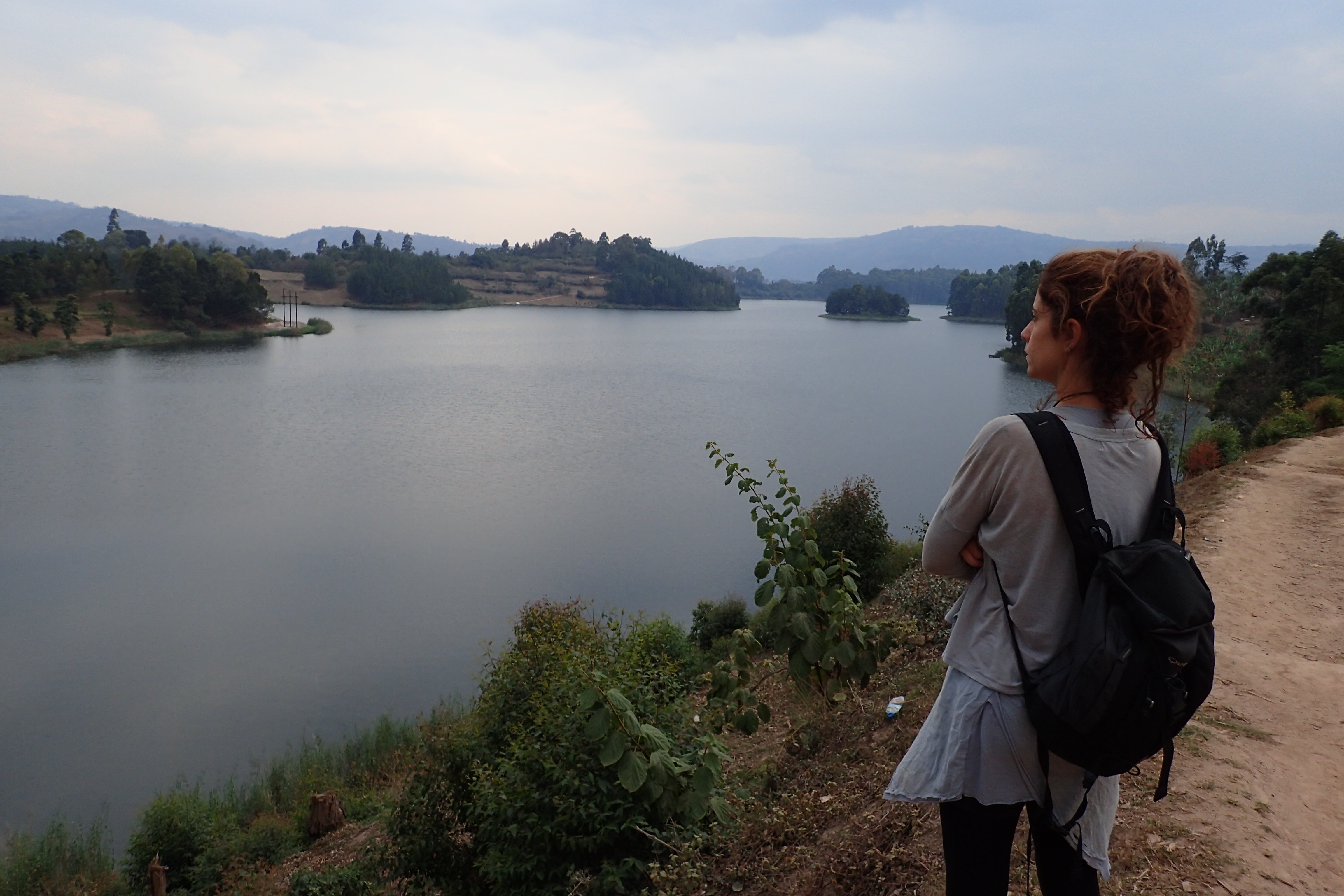 Tras este baño de historia nos dirigimos a la estación de buses para poner rumbo a Kibuye, el punto de partida para hacer la mitad del Congo Nile Trail, una caminata de 100km hasta la localidad de Gisenji al norte del lago Kivu, que hace de frontera natural con la República Democrática del Congo. Kibuye fue la sede de una de las batallas más penosas del genocidio, en la que unos 30.000 tutsis armados de palos y azadas hicieron frente en una colina a sus rivales hutus bien armados de AK-47. Solo 10 tutsis sobrevivieron a esa barbarie. Con un poco de nervios en la cama, al día siguiente comenzamos la caminata con un mapa no demasiado detallado que emitió el gobierno en un panfleto y sabiendo que no veremos muchos europeos en los próximos días (ninguno de hecho). Los primeros kilómetros es recomendable saltárselos en auto-stop o boda-boda (moto-taxi), ya que comparten recorrido con la carretera que están construyendo los chinos, ahora mismo un barrizal lleno de camiones de obras. Optamos por autostop, y los primeros coches que pasan nos hacen un hueco con mucha generosidad. Es importante recalcar que la gente local confunde el Congo Nile Trail (un camino a la orilla del lago, a veces sendero) con la carretera Congo Nile, que va a media ladera de la montaña. Nos costó medio día de equivocación y de chupar polvo saber que no íbamos por el sendero que queríamos. Lo justo para llegar todavía de día al punto final de la etapa (Musasa). Como nadie que encontramos habla inglés, nos dirigimos a la escuela y los maestros nos ayudan en la tarea de encontrar un sitio para dormir. Los niños uniformados nos rodean a decenas. Hablamos durante un buen rato con los profesores, atónitos a la forma de vida que tenemos en Occidente. No pueden entender que en Europa la gente tenga animales de compañía en casa y que no se los coman; que a la universidad puede ir cualquiera que quiera estudiar; que la sanidad sea gratuita; que una persona pueda comer en un comedor social o banco de alimentos e incluso cobrar el paro sin tener que trabajar. Tras una noche en el «hotel» que nos encuentran los maestros, un cuchitril tan cutre que nos hace desarrollar la técnica de montar la tienda de campaña dentro de la habitación sobre el colchón, muy útil para los próximos días. Nos servirá de mosquitera y de espacio mínimamente higiénico. Sin agua, ni luz, ni posibilidades de comer nada diferente a la patata dulce cocida, agradecemos un montón llevar comida envasada de España. Una lata de atún en aceite se convierte en merluza de pincho del Cantábrico a estas latitudes.