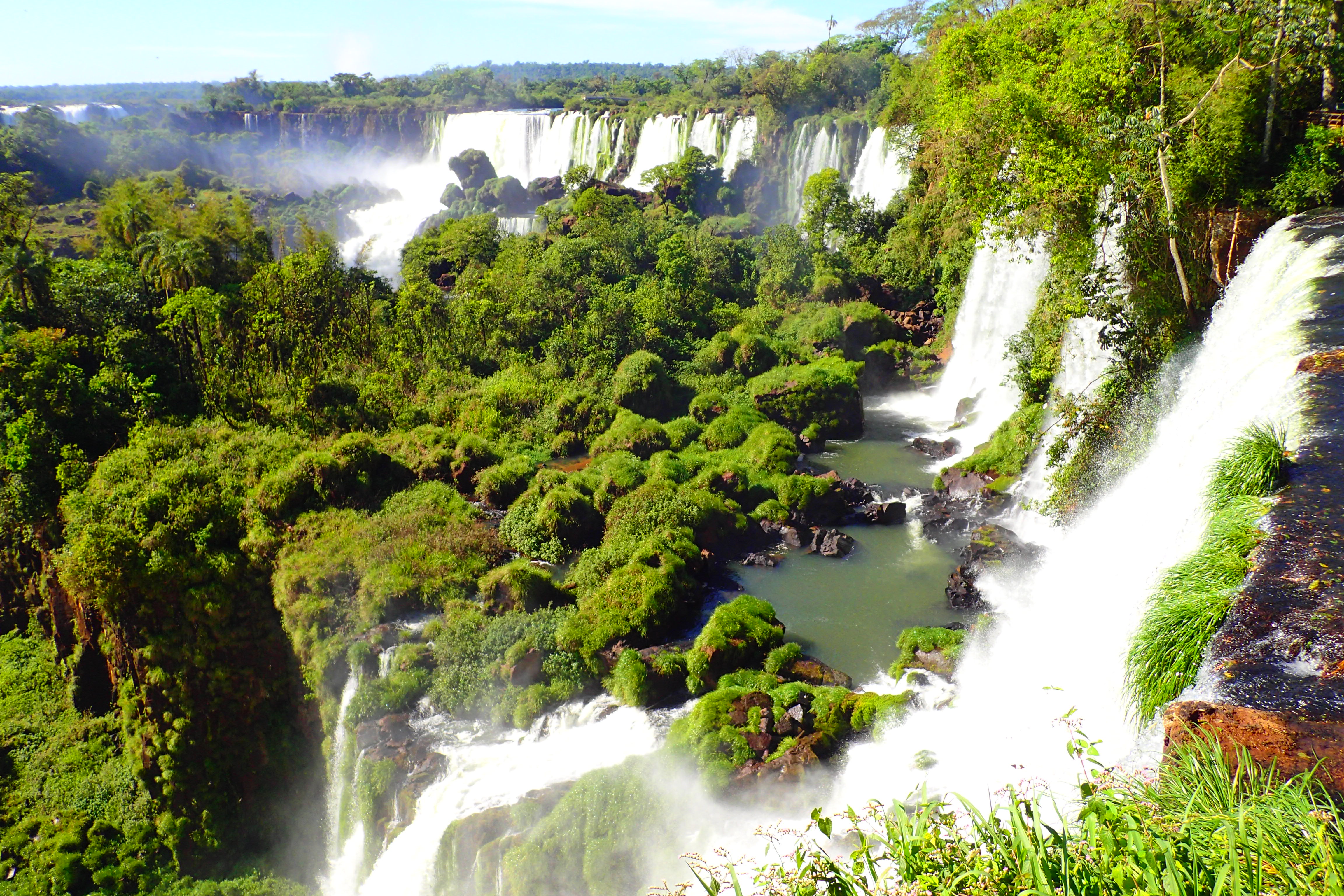 Desde el aeropuerto de Puerto Iguazú me junto a un grupo de estudiantes portugueses para compartir el taxi a las cataratas (única forma de llegar directo desde el aeropuerto que no sea caminar un par de horas). La visita a las cataratas se puede hacer perfectamente en un solo día y recorriendo todos los caminos habilitados en el Parque Nacional. Mi recomendación para evitar en cierto modo la multitud de visitantes es empezar por el Camino Superior, Camino Inferior, cruzar a la Isla de San Martín (si se puede), Garganta del Diablo y finalmente darse un baño en el Salto de Arrechea. Lo más impresionante para mí fue claramente la Garganta del Diablo y haciendo la visita en este orden se conseguirá que todo nos vaya sorprendiendo cada vez más. Tuve la suerte de cruzar en el primer barco del día a la Isla de San Martín (incluido en el ticket normal al Parque) y las vistas desde allí merecen mucho la pena. Este trayecto en barco está habitualmente cerrado al público aunque aparentemente han empezado a dar este servicio nuevamente.