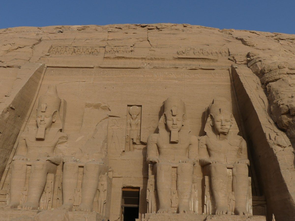 20190512172315 Publicado 12 mayo, 2019 en 3264 × 2448 en Egipto, fin de la travesía africana ← Anterior Siguiente → Entrada del templo de Abu Simbel con las cuatro estatuas de 22m de Ramsés II