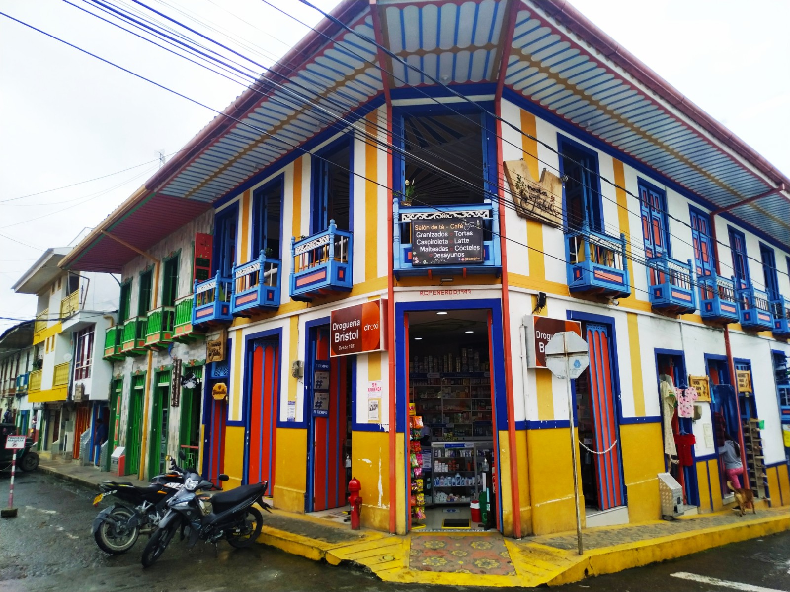 Desde el extremo nororiental de Colombia en la Guajira volamos hasta el centro del país, rumbo a la región de Risaralda, en el eje cafetero colombiano. Los vuelos son baratos, ciertos, rápidos, asépticos y muy aburridos, pero en plena pandemia y paro nacional, con más de mil puntos con barricadas por todo el país resultan la mejor opción. Desde la ciudad de Pereira, especialmente brava en estas protestas, prueba de ello su centro histórico devastado y con varios muertos en sus calles, nos dirigimos a Filandia, pueblo célebre por sus coloridas calles y su excelente café. Este pueblo es un buen ejemplo de lo mucho que se puede conseguir con cuatro botes de pintura. No sé si traerán la felicidad, pero sí la alegría.