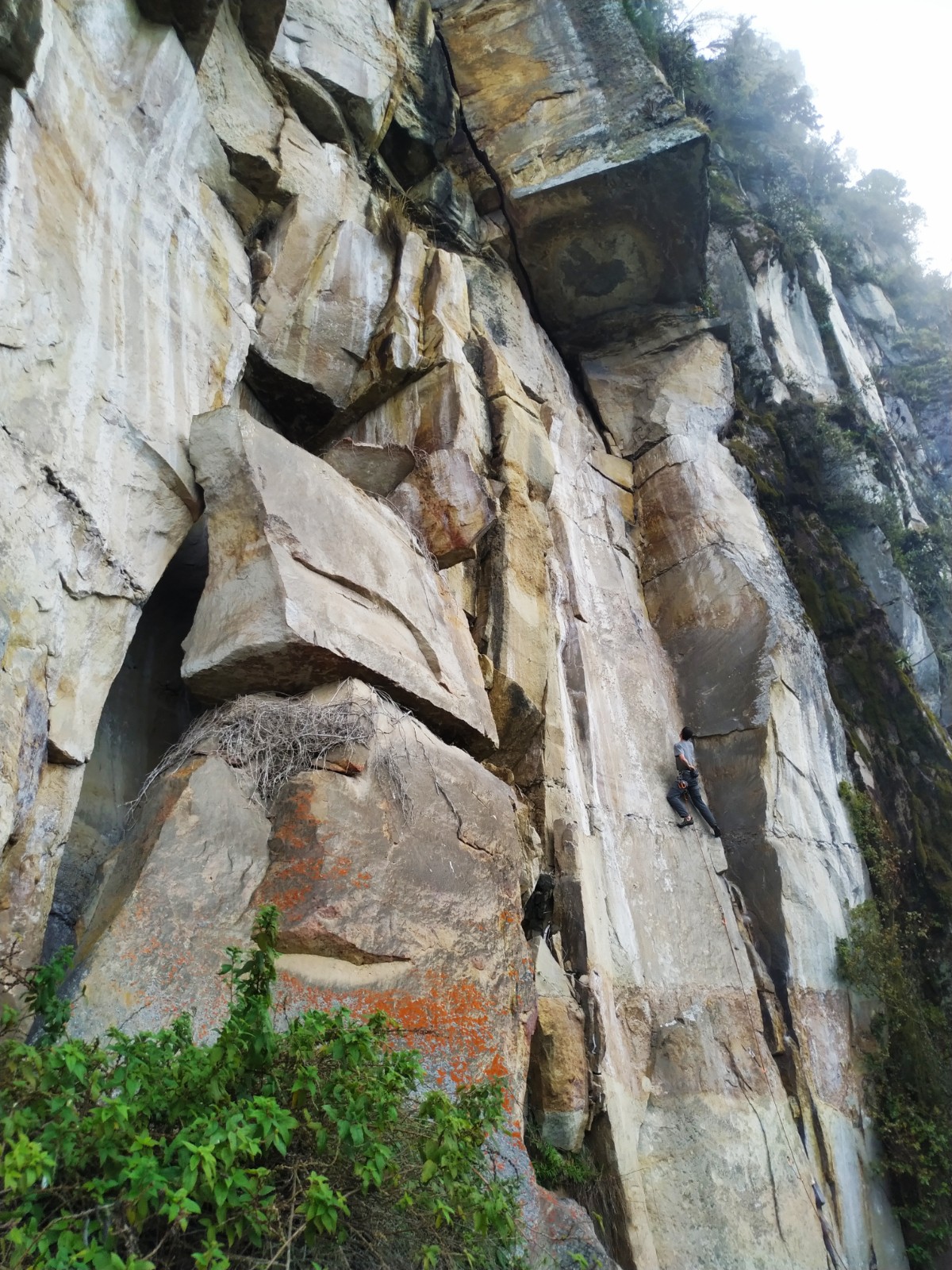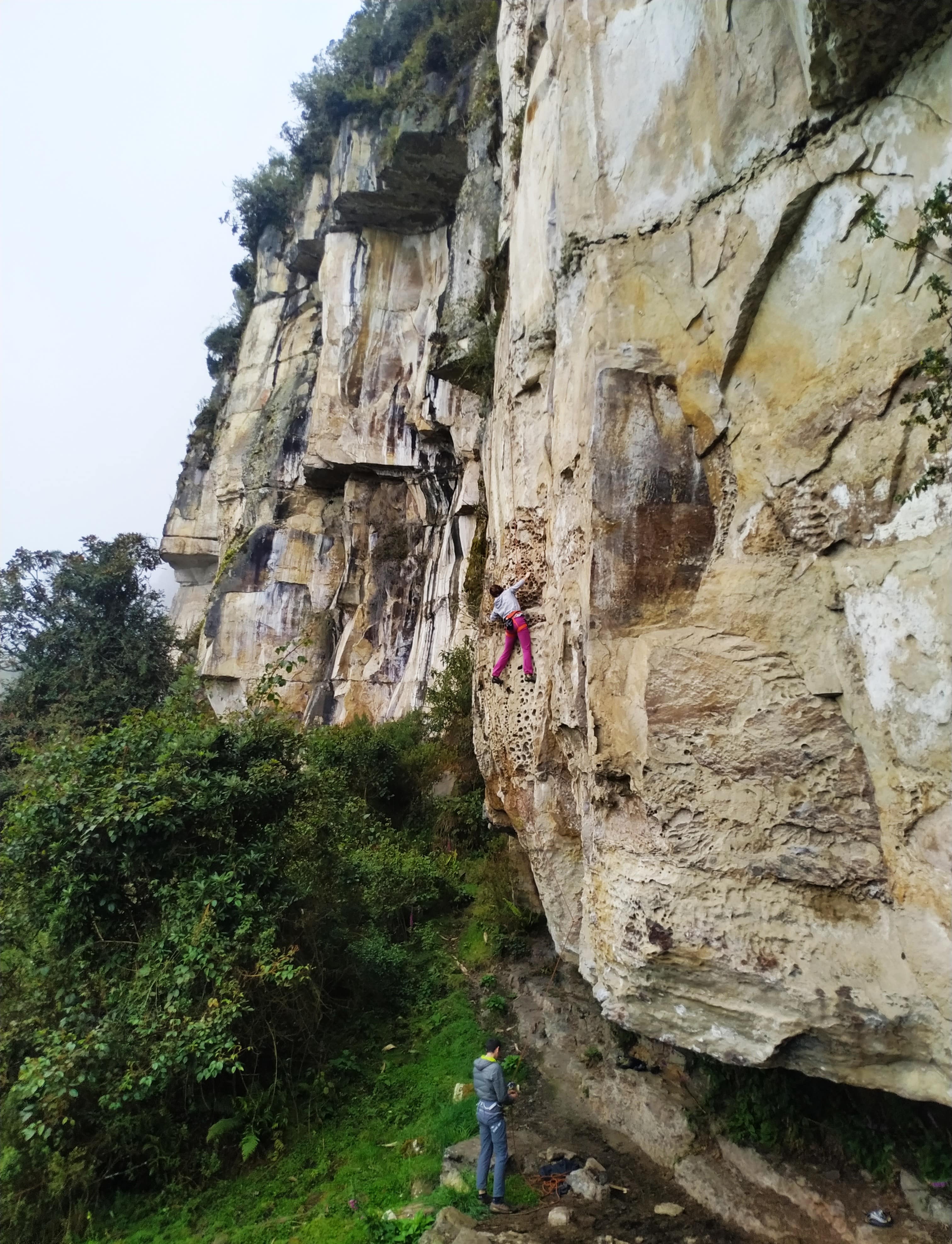 Al día siguiente de llegar a Bogotá nos apuntamos a un rocódromo para mantener un poco la forma física y ese mismo día conocemos a Agustina, una simpática argentina que ha escalado por medio mundo y que nos invita a acompañarla los fines de semana a conocer la gran oferta de roca que tiene Bogotá. También gracias a Agustina conocemos a Jaime, un famoso artista colombiano con el que también escalaremos. La cercana Choachí, a apenas 35km de Bogotá, fue hasta 2016 zona roja, cuando se firmaron los Acuerdos de Paz con las FARC, es decir una zona con posible control guerrillero y, por lo tanto, evitado por todo aquel que no fuese un gran amante del peligro con mayúsculas. Por ello, desde 2016 los bogotanos han descubierto la cantidad de roca que hay en Choachí, con lugares tan increíbles como el Valle Escondido, el Rinconcito y Agua Dulce y han equipado multitud de vías de escalada en un entorno fabuloso y a una altura de casi 3.000m. Resulta llamativo que los propios escaladores equipen rutas con dinero de su bolsillo (una vía puede costar unos 30 euros en anclajes metálicos y estamos hablando de docenas de vías) y que esto lo hagan dentro de una propiedad privada de un particular; la misma historia del resto de Colombia: el campo suele ser privado. El dueño del terreno se aprovecha del trabajo y del dinero de los escaladores, a la vez que cobra a cada escalador por el ingreso en su terreno y por aparcar, una simbiosis perfecta para el propietario del terreno y algo que no hemos visto en ninguna otra parte.