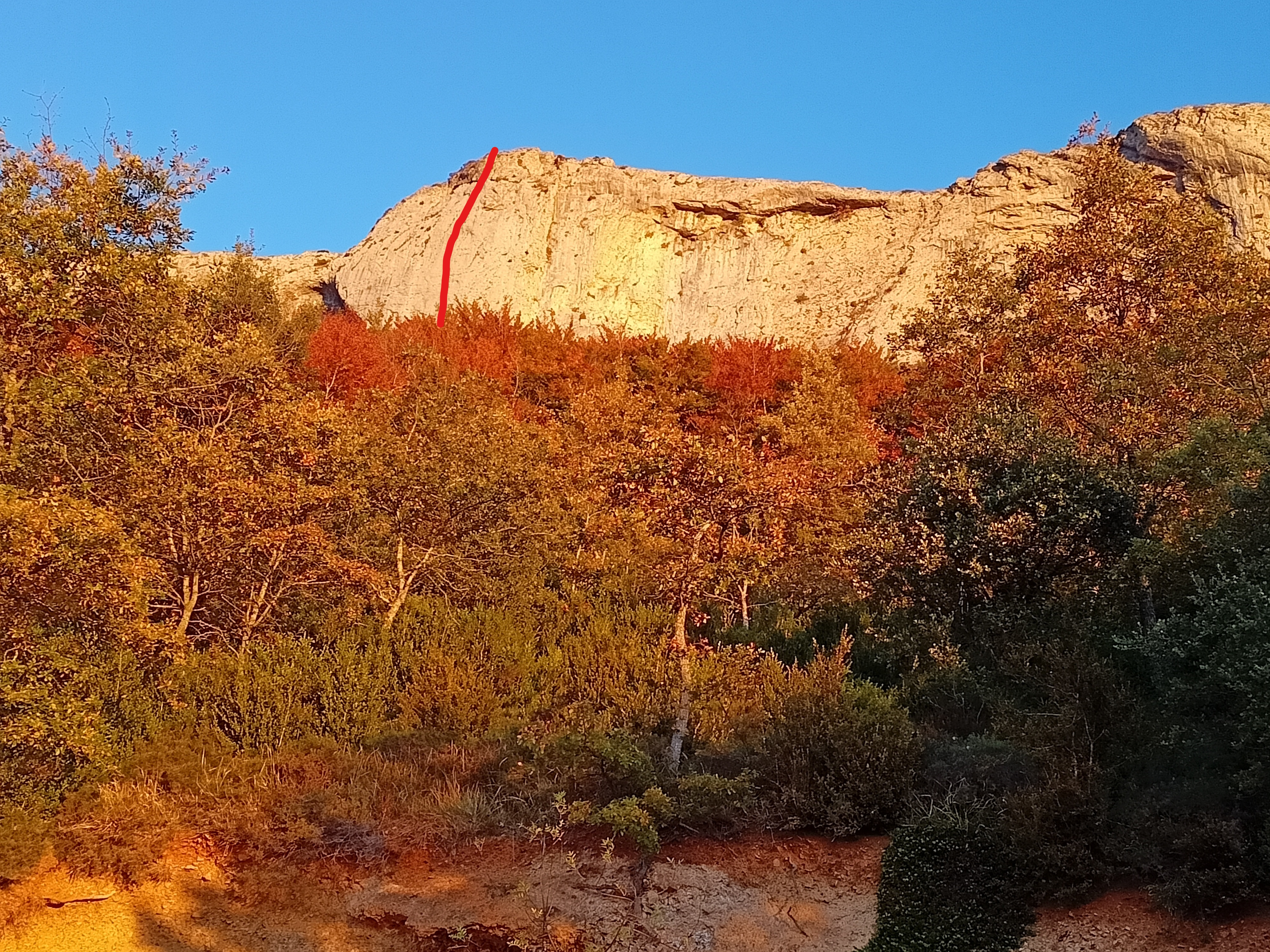 Habíamos fichado el pilar sur del San Tirso hacía 10 años, durante la apertura de Luna de Enero, el cual había permanecido inalterado hasta este octubre, cuando volvimos a pasar cerca de su base durante las aperturas de «Bella Ciao» y «Desierto Rioja» y decidimos catarlo. La calidad de roca de este pilar es fuera de lo normal, con una placa de caliza blanca compacta impresionante, con agujeros lo suficientemente profundos para protegerse muy bien con seguros flotantes. En un día conseguimos abrirla a falta de los últimos cinco metros, donde un parabolt que se nos cayó en la aproximación nos hizo falta para poder acabarla. Con calizas como esta no nos importó mucho volver a subirla y rematarla.