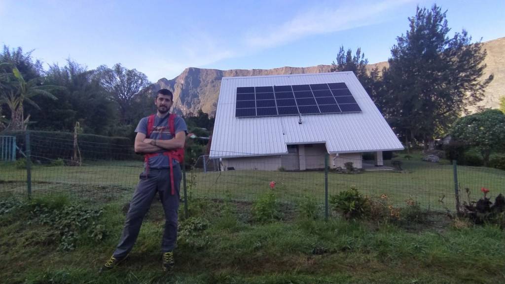 Toca regresar a la universidad y conocer los proyectos que están realizando en la isla. Mientras que la costa dispone de red eléctrica, principalmente alimentada por petróleo y alguna instalación solar, muchos pueblos del interior no disponen de conexión a la red: a cambio gozan de instalaciones aisladas fotovoltaicas y de una mayor austeridad energética. Es Francia y muchos franceses en La Reunión han decidido que vivir en una isla a más de 8.000 km de Europa no es estar aislado. Por eso, muchos de ellos han decidido aislarse mucho más en alguna de las dos docenas de poblaciones diseminadas en sus tres cráteres volcánicos y cuyo acceso solo puede ser hecho caminando más de dos horas (algunos a 4 horas) y asumiendo desniveles positivos enormes. En uno de estos pueblos “La Nouvelle”, a solo dos horas y media de camino y 600 metros de desnivel positivo, hay colegio, centro de salud, tienda, restaurantes y, cómo no, panadería, además de una mini red solar que almacena la energía en baterías y en una pila de combustible de hidrógeno. Todo, menos las personas, que tienen que llegar caminando, llega en helicóptero. Peor lo tienen los vecinos de Roche Plate, que tras quedarse sin su camino de acceso por un desprendimiento de rocas tienen que sumar varias horas de caminata adicionales para llegar a sus casas con más de 1.200 metros positivos.