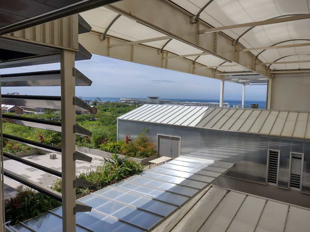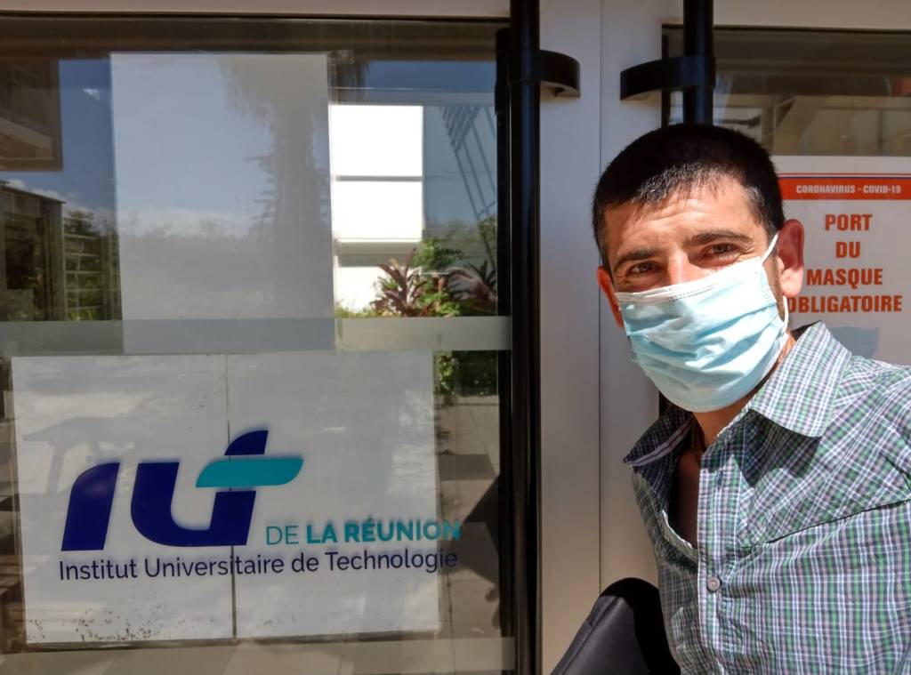 La universidad está dividida en cuatro campus alrededor de la isla y concretamente, el correspondiente a energía solar se encuentra en la ciudad de Saint Pierre en el sur y a unos 80km del extremo norte. Tomaremos Saint Pierre como campamento base dado que las distancias son muy cercanas en el cuentakilómetros del coche, no así en el tiempo para cubrirlas por el enorme tráfico de una isla que casi roza el millón de personas, principalmente localizadas en la pequeñísima franja de costa. A partir de la costa los volcanes se elevan impenitentes en un terreno de abruptos barrancos y coladas de lava cubiertas de una vegetación salvaje, solo blanqueada por los increíbles saltos de agua de cientos de metros, todo ello dando lugar a uno de los paisajes más espectaculares que hayamos conocido. Esa belleza tropical nos da mucha energía y nos organizamos con madrugadas a las 4 de la mañana o antes, para conocer los encantos de la isla, antes de poder ir a la universidad. Por otra parte, después del trabajo todavía da tiempo de completar la jornada con más actividad. Solo así, durmiendo en el coche, tirando de frontal y con bastante café se es capaz de conocer la isla y cumplir los objetivos del Erasmus+ en un par de semanas. Descansar, ya descansaremos en el avión de vuelta.