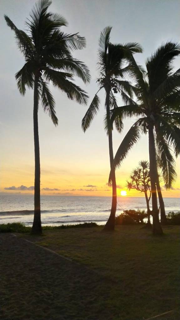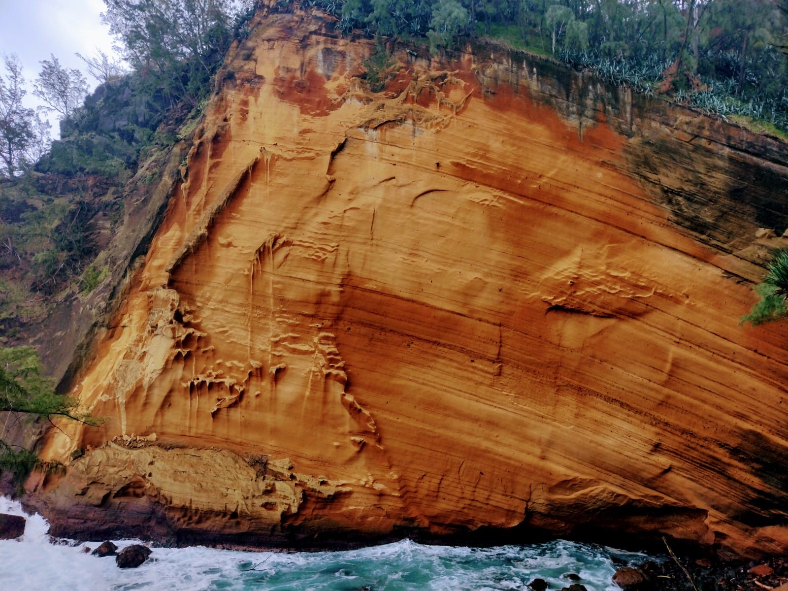 Llegamos a Saint Pierre por la tarde con ganas de una buena ducha y reservamos un hostal. Según nos inscribimos en la recepción, nos informan que han declarado la alerta roja por ciclón y que a partir de entonces no se puede salir a la calle. ¡Salvados por la campana! Los modelos de satélite indican que el ciclón pasará a varios cientos de kilómetros de la isla y que va derecho a Madagascar, justificando la pobreza del que es uno de los países más pobres y subdesarrollados del mundo. Parece ser que las autoridades, escaldadas de la falta de aviso por el anterior ciclón, en este estén pecando de excesivamente precavidas. El viento apenas llega a los 50km/h y la lluvia es reducida. Para la media mañana del día siguiente han levantado la alerta y la gente vuelve a su rutina. La universidad, a pesar de levantarse la alerta, se mantiene cerrada y nos permite acercarnos a conocer la cascada Jacqueline y el cabo Jaune, que como su nombre indica es de ceniza amarilla. Cenamos en la playa de Grand Ansé. En un lado de la playa un grupo de reggae congrega a cientos de personas, más adelante una boda mixta bajo las palmeras se dan el sí quiero, varias docenas de corredores se ejercitan en la hierba de la playa, otros toman el sol mientras una multitud disfruta de barbacoas o tocando música. Todo público, todo gratis y sin distinciones. ¡Qué calidad de vida!