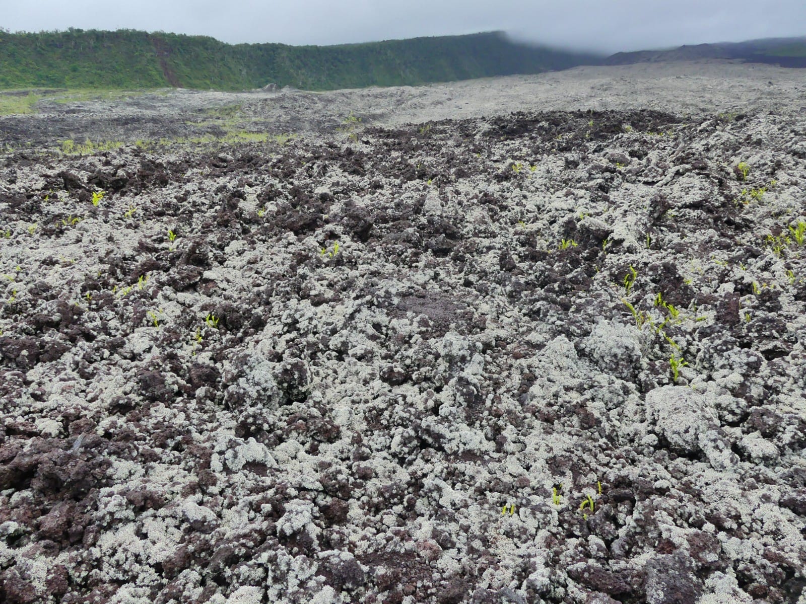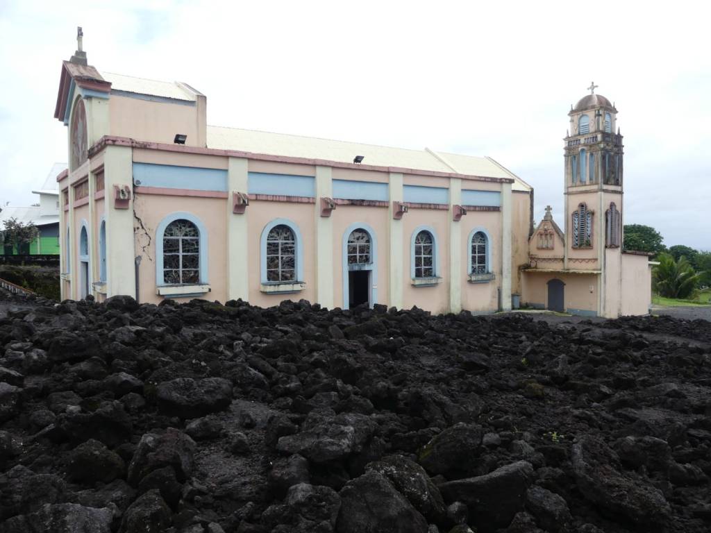 Cerca de aquí, por la carretera de la costa sur se atraviesan las coladas la lava de los últimos años. El tamaño de los líquenes, primeros habitantes tras la erupción y de otras plantas dan muestra cronológica de cada colada. Algún pueblecito se resiste al poder del volcán en ubicaciones idílicas como Santa Rosa, donde la lava entró en la iglesia y la rodeó, pero no consiguió derribarla. Cerca de Santa Rosa se encuentra el magnífico entorno de Anse des Cascades, lleno de mesas para almorzar, muchas de ellas con cobertizo para la lluvia. La isla dispone de más lugares para almorzar y dormir al aire libre que ningún otro lugar que hayamos visitado antes. Sorprende gratamente la integración de las distintas poblaciones. Blancos, negros y asiáticos, todos ellos habitantes de La Reunión, comparten los mismos espacios públicos con independencia de su nivel económico y mezclados entre ellos; sin la evidente segregación económica y racial que ocurre en tantos lugares.