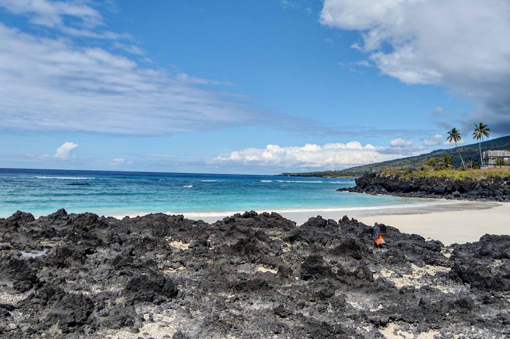 Playa de Chomoni, arena blanca coralina y lava negra volcánica