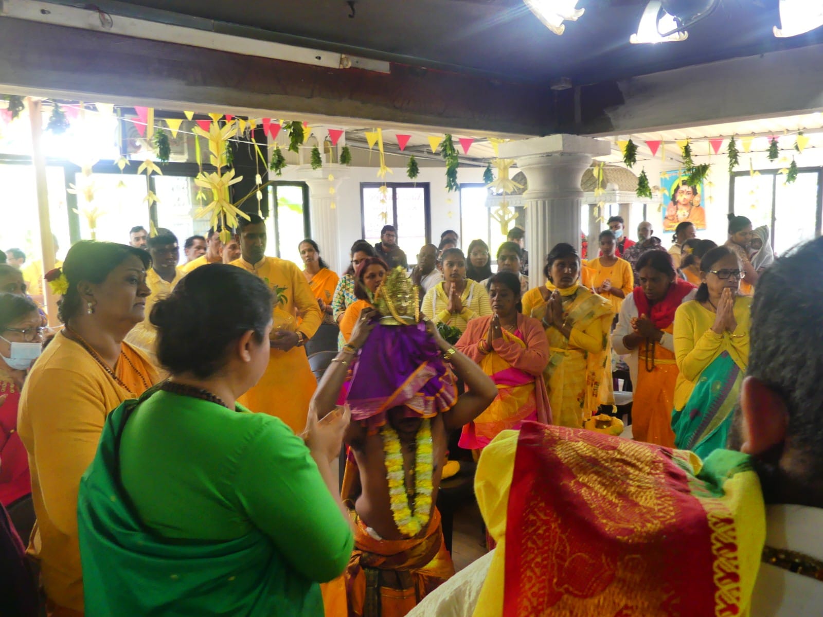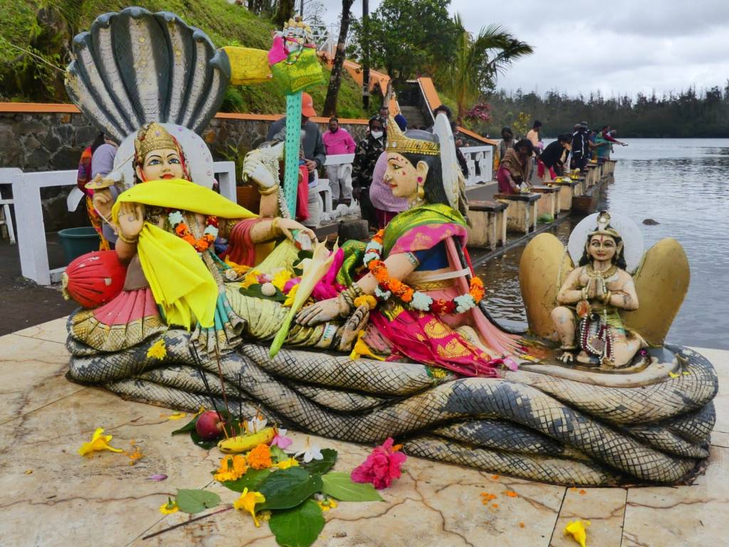Evocando vivencias pasadas continuamos por el interior de Mauricio hasta las cascadas Tamarin, una sucesión de varios saltos de agua impresionantes. El barro escurridizo de los senderos de esta isla será la tónica general y cuan jabalís restregándose contra los troncos para rascarse, haremos lo mismo con piernas y zapatillas para quitarnos el barro tras cada jornada. Saliendo del barranco de Tamarin vemos una multitud de gente en un templo hindú. Varias mujeres con sari nos señalan invitándonos a entrar. Nos descalzamos mientras tomamos asiento dentro del templo en el que están de celebración. No conseguimos entender absolutamente nada durante la casi hora y media de ritos en el que nos dan de beber distintas bebidas en la mano y asistimos a cómo los “sacerdotes”, con medio cuerpo desnudos, procesionan distintas esculturas de sus múltiples deidades. Resulta muy llamativo que al levantar las esculturas escenifican como si en ese momento estuvieran poseídos por la propia deidad. A pocos metros, también dentro del templo, varias personas cocinan en una olla enorme para todos los asistentes, algo así como si a un lado del altar de una iglesia riojana asasen chuletillas para todos los feligreses. Tras esta fascinante muestra de hospitalidad continuamos hasta Grand Bassin, un bonito lago natural alimentado por el bosque nuboso, convertido en el centro de peregrinaje de los hindúes en este país. Varios templos, esculturas coloridas de 20 metros de fibra de vidrio y quizá, no cientos, sino miles de personas asisten de una manera alegre a sus ritos, en los que el visitante será bien recibido.