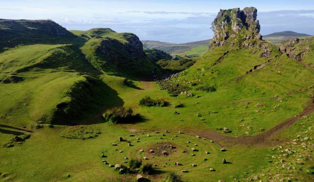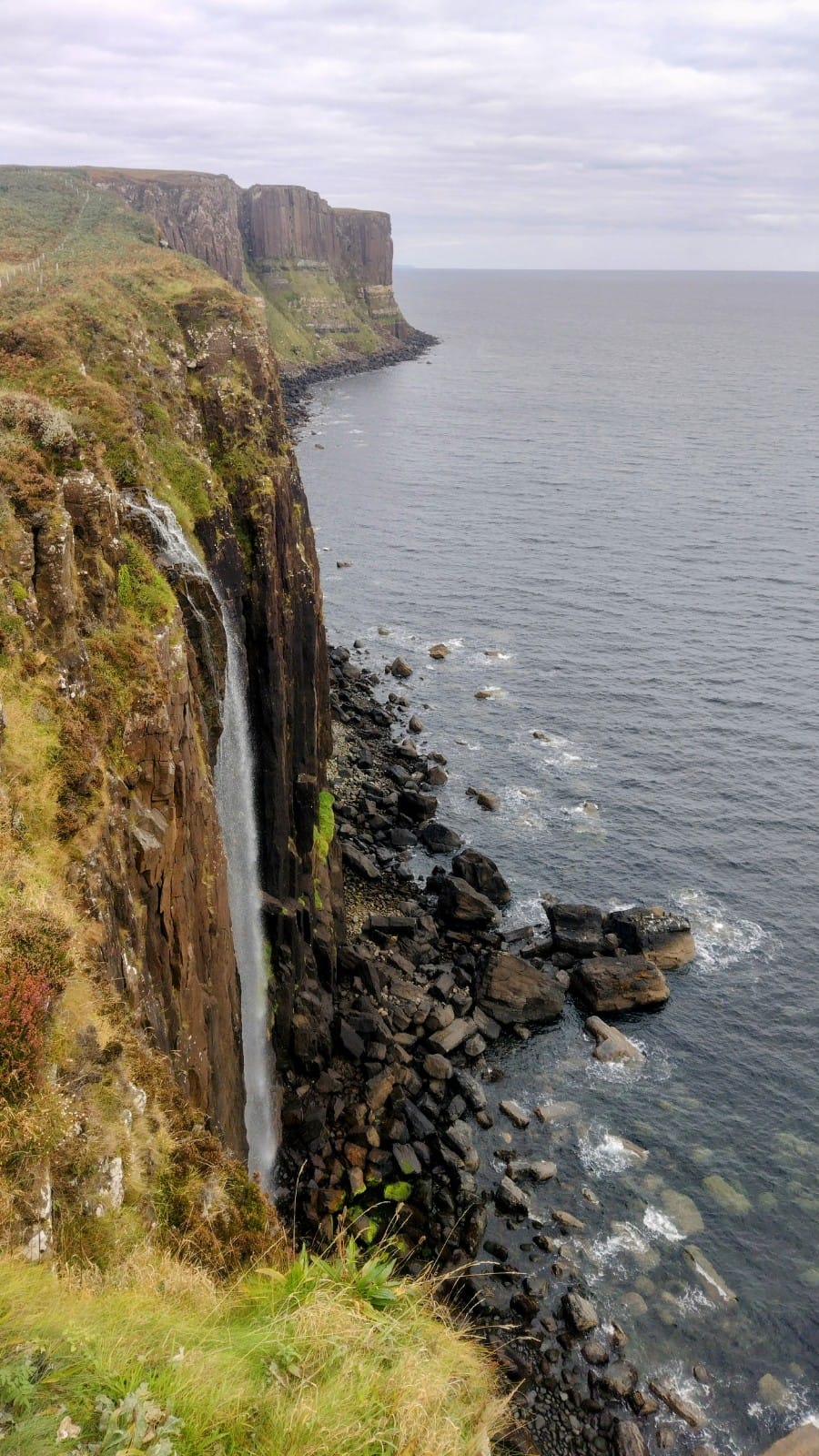 Continuo más al norte para conocer la cascada Mealt, que descarga sobre el mismo mar y las huellas de dinosaurios de Staffin, discretas en cuanto a calidad conociendo las que tenemos en La Rioja. Relativamente cerca de allí visito también el Quiraing y el Fairy Glen, dos de las excursiones que todos los visitantes a esta isla realizamos y, que por ello, pierden su esencia si no se madruga para evitar las masificaciones. Solo así, madrugando, comiendo frío y de pie, aprovechando el día hasta el atardecer y durmiendo cada noche en el coche abatiendo el asiento con un saco de dormir demasiado fino, una técnica depurada por años de experiencia, desde aquellos primeros viajes en el Opel Kadett del 88 a Pirineos, la humedad escocesa va calando en los huesos y la experiencia se vuelve mucho más intensa. La melancolía de las ruinas del castillo Duntulm con las últimas luces del día me trasladan a una época oscura, mientras que a la mañana siguiente, la playa de arena blanca de Glen Claigan hace lo propio llevándome a playas de latitudes más amables.