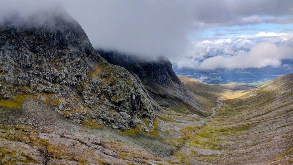 Comienzo subiendo al Ben Nevis, el techo de Reino Unido, en un día en que la niebla, como si sufriera las mareas, permite vislumbrar a ratos un escenario magnífico de costa, lagos, ríos, praderas y turberas. En la cara norte de este monte se han curtido generaciones enteras del alpinismo inglés en unas condiciones que pueden ser comparables a las tormentas de cordilleras mucho más ambiciosas como la del Himalaya.