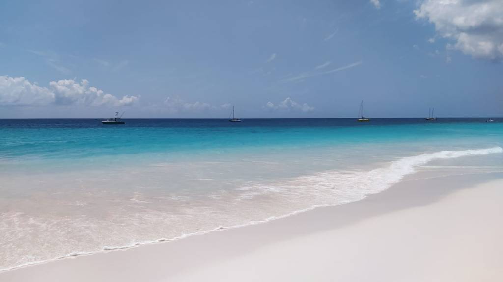 En la misma capital se encuentra la playa de Pebbles, también conocida como Copacabana, donde hace unos años y, con mucho acierto, hundieron adrede varios barcos, desde veleros hasta pesqueros, convirtiendo el fondo arenoso blanco en una explosión de arrecife de coral y vida. Una multitud de empresas venden los servicios de guía para adentrarse en este parque marino ubicado a apenas 300 metros de la costa. Por la extrema cercanía con la playa, en lugar de contratar una excursión, directamente nadamos desde la orilla hacia los barcos de las excursiones, que nos indican con su presencia la ubicación exacta de los pecios. Esta playa es de por sí increíble por el color blanco rosado de su arena, pero el milagro empieza a pocos metros de la orilla, cuando las tortugas, águilas marinas, bancos de peces multicolores, más tortugas, peces murciélago y rayas eléctricas van apareciendo a la vista, hasta llegar al apogeo del coral de los barcos hundidos. Es difícil explicar con palabras el éxtasis de vida que existe a pocos metros de profundidad en esta costa. Varias tortugas se acercan hacia nosotros en su camino hacia la superficie para respirar; una incluso llega a morder la sandalia colorida de Bea. Es por ello que, a pesar de las carencias en atractivos culturales, históricos y de naturaleza sobre el agua que este país tiene, nuestra sonrisa no desaparece de la cara. Así vamos explorando poco a poco y con la paciencia que la observación de animales submarinos requiere los fondos de Heywoods, Folkestone y Paynes, playas, todas ellas, ubicadas en sotavento, allí donde los sargazos no llegan. La existencia de paseos y pasarelas para recorrer la costa nos permite caminar cómodamente de playa en playa buscando las mejores condiciones posibles.