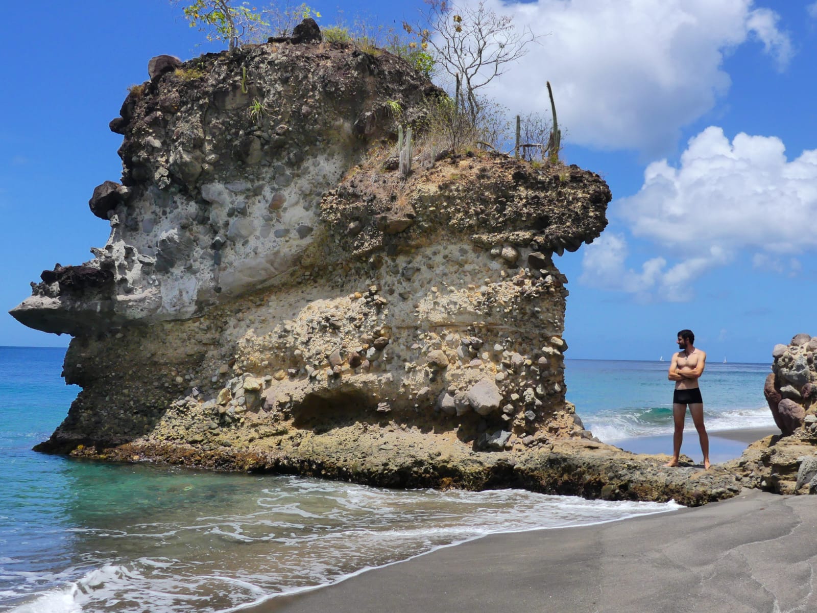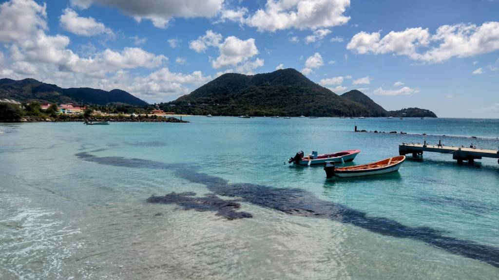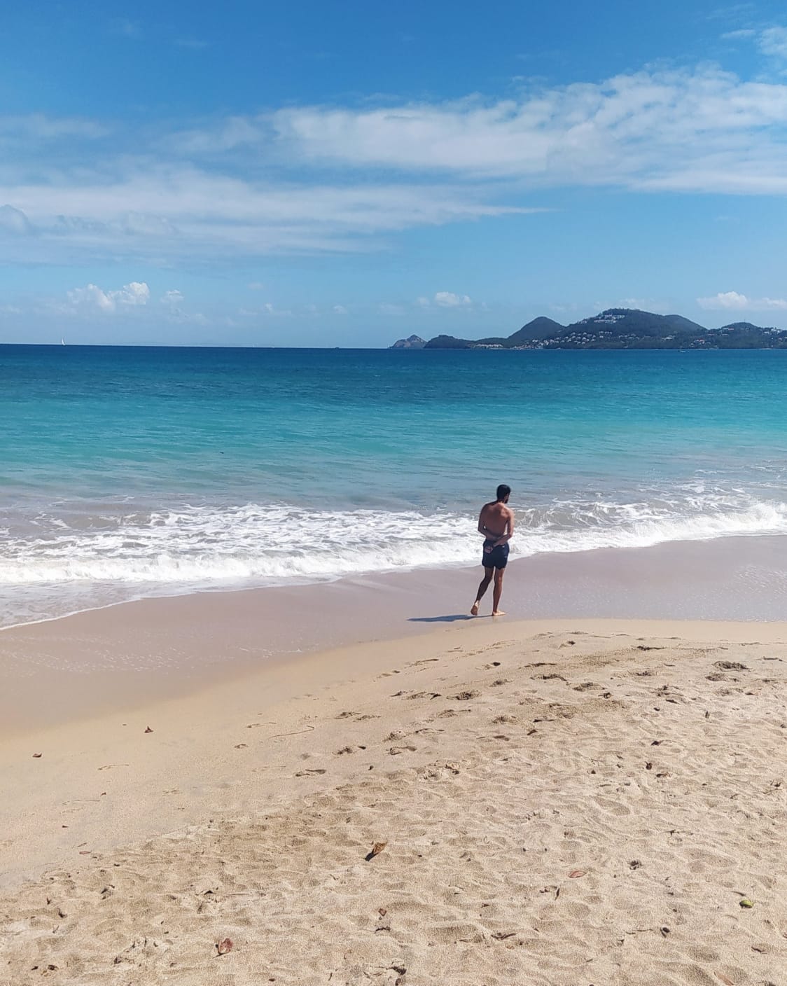A la mañana siguiente, caminamos por un sendero de agricultores entre plantaciones y pastos hasta Sugar Beach, otra playa con hotel de súper lujo, esta vez con snorkel algo peor del del día anterior. Tras pasar la mañana a remojo, un camión de reparto nos libra de los 400 metros de desnivel para salir de esta cala y devolvernos a Soufriere. Conforme pasa el tiempo nos vamos dando cuenta de lo extremadamente fácil y agradable que es hacer autostop en estas islas caribeñas y así conectar con los lugareños. Desde allí nos dirigimos al extremo norte, a Gros Islet, donde pasaremos un par de días de playa tranquilos descansando y comiendo. Como no, la última noche regresamos a nuestro chiringuito de la playa donde volveremos a acampar, en compañía del guarda de seguridad Martin, con quien charlaremos largo y tendido sobre su escarpado país de volcanes y fondos marinos de lujo. Santa Lucía, ¡qué bonita eres!