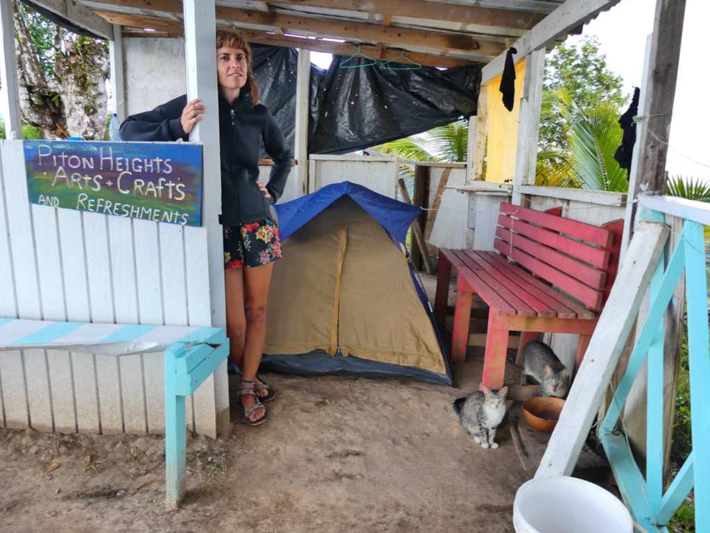 Creo que nos ven cansados y sudados de la caminata y nos invitan a entrar -ahorrándonos la entrada de 10 dólares por persona- y a dormir en el mirador, protegidos por un cobertizo de la más que probable lluvia nocturna. Creo que son pocos los viajeros en Santa Lucía que viajan en tienda de campaña y les parecemos algo, ¿cómo calificarlo? exótico, es la palabra. Las vistas desde el mirador son increíbles, estamos solos y tratamos de sintetizar la gran cantidad de vivencias que hemos tenido en solo 24 horas, 24 horas que en condiciones habituales dan para muy poco y que aquí cuesta tantas líneas explicar.