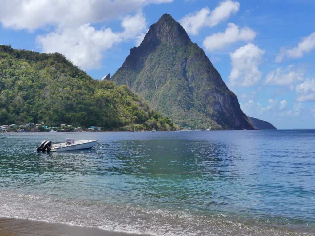 El hecho es que llegamos a Santa Lucía desde San Vicente, en uno de los poquísimos vuelos directos existentes, y que hemos reservado apenas unos días antes. Estas compañías “bananeras” ponen y quitan vuelos buscando captar clientes y una vez atrapados somos manejados como títeres con las fechas en que a ellos les interesa concentrar sus vuelos. Esta vez, la jugada sale bien porque el avión llega en hora y además hemos reservado un coche de alquiler para conocer la isla. Cuando llegamos a Castries, la capital de Santa Lucía -país independiente desde 1979, aunque su jefe de Estado sigue siendo el rey Carlos III de Inglaterra-, descubrimos que los errores existen cuando tantas decisiones han sido tomadas con semejante calor. Hemos reservado un coche, sí, pero las fechas de nuestro alquiler se corresponden con el mes siguiente. Esto lo descubrimos a las 10 de la noche, al ver que la oficina de alquiler está cerrada y nadie responde al teléfono. El aeropuerto lo están cerrando también, llueve con fuerza y esta pareja de viajeros vuelve a enfrentarse a un cambio de planes. – O tomamos un taxi y que nos lleve al hotel de su primo, o cruzamos la acera y dormimos bajo cubierto en el chiringuito de enfrente. Ah, se me olvidaba, el aeropuerto de Castries tiene como sala de espera una playa de aguas turquesas, y los restaurantes del aeropuerto son los mismos chiringuitos de la playa. Un pequeño golpe de suerte. La noche lluviosa no invita a alargar la juerga de los clientes de estos locales y el guarda de seguridad, Martin, un hombre muy cálido, nos invita a acampar allí, bajo la barra de los chiringuitos. – Ningún problema, os vigilaré el sueño.