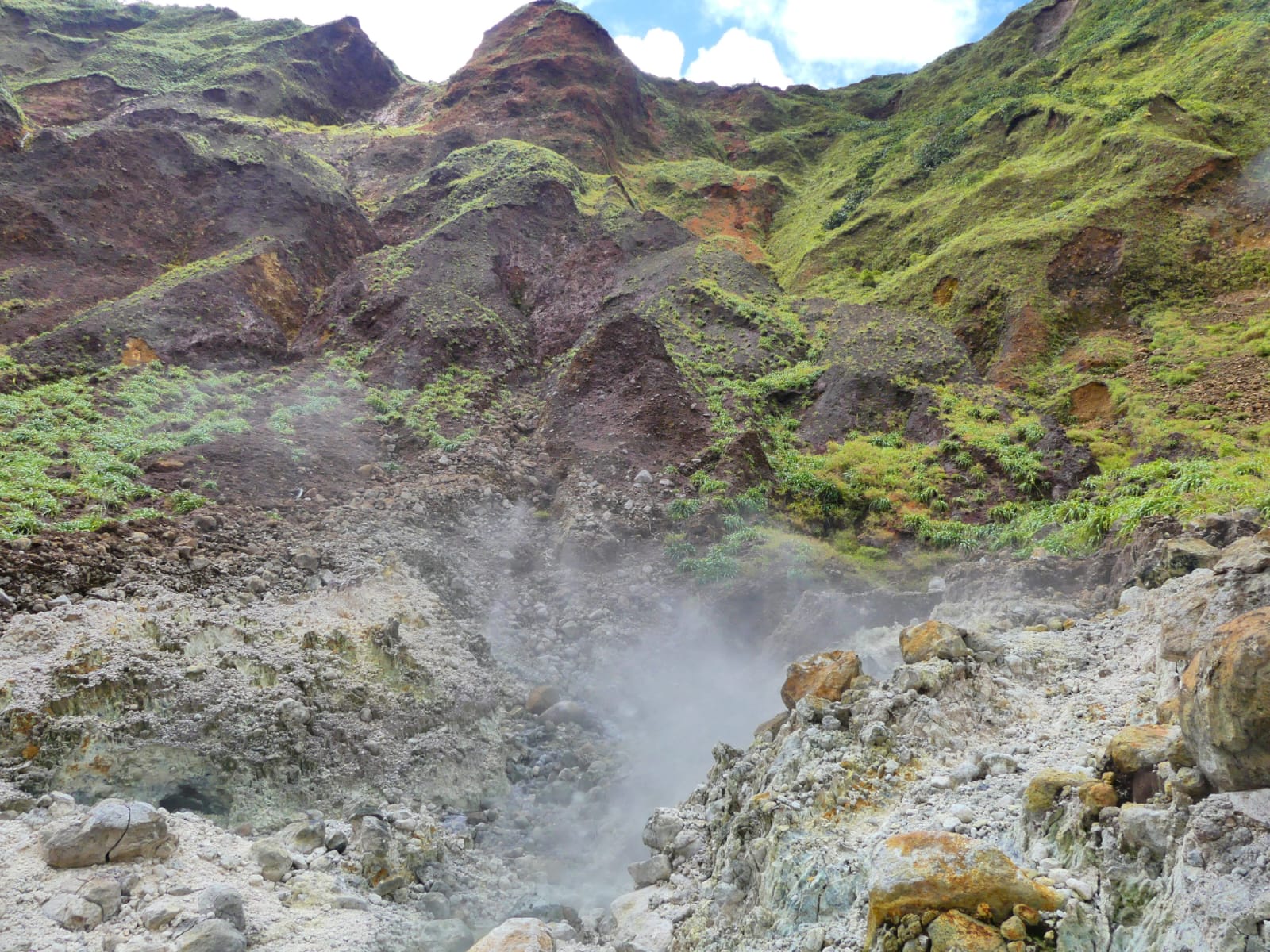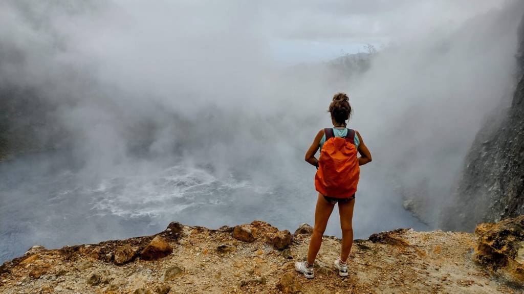 Dedicaremos la mayor parte del tiempo en esta isla al senderismo. El Waitukubuli, un sendero de 200km a lo largo y ancho de la isla fue diseñado hace años para atraer a algún turista extranjero y tratar de competir con los senderos de las islas vecinas de Guadalupe y Martinica, territorios franceses y, como tales, muy bien organizados para las actividades al aire libre. Sin embargo, el escaso mantenimiento de esta infraestructura está haciendo que la vegetación se apodere del sendero; además, la desaparición de alguna turista que lo recorría tampoco ha ayudado mucho al propósito inicial. Comenzamos con el sendero al Boiling Lake, dentro del parque nacional Morne Trois Piton, un excelente recorrido en vegetación selvática que atraviesa campos de fumarolas -conocidas como el Valle de la Desolación- hasta llegar a un lago, cuyas aguas hierven de qué manera por la actividad volcánica subterránea. Probablemente, se trata del sendero más popular de la isla y contabilizamos hasta 10 personas recorriéndolo, principalmente turistas norteamericanos. Precisamente, serán varios de estos turistas los que nos faciliten un poco las cosas al llevarnos en autostop a conocer el Freshwater Lake y la imponente cascada Middleham. Será divertido cuando en otra ocasión estos mismos turistas extranjeros nos vean subidos en la caja de un camión de transporte de áridos, junto con 25 trabajadores haitianos. A estos últimos les hablamos de nuestra corta incursión en su país y lanzan su mirada al suelo. Por su reacción, no da la impresión de que se sientan muy orgullosos de su complicada patria. También conocimos inmigrantes haitianos en Chile y en la República Dominicana y su mirada melancólica cala hondo.