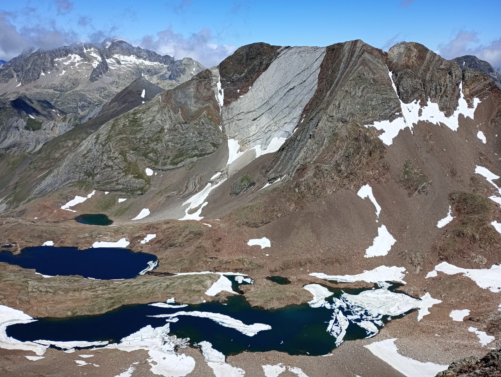 Recuperadas las energías cambiaremos de valle hasta el de Tena, concretamente hasta Baños de Panticosa, un increíble foco de actividad montañera en el que habrá que elegir bien las cumbres que elegimos para evitar las masificaciones. Así pues decidimos subir por los ibones de Labaza hasta coronar la Peña de Xuans (2828m) y desde allí seguir a lo largo del valle de Bramatuero hasta el esquivo Arratille (2900m) y a través de su cresta alcanzar el pico de las Neveras (2892m). Esa noche dormiremos en el refugio de Bramatuero, levantado por interés de Acciona para almacenar su electrónica de control para la hidroeléctrica de los ibones represados y mejorar así su imagen por el impacto de lo anterior. Así pues será de los pocos o, único, refugio libre del Pirineo con luz eléctrica. A la mañana siguiente seguiremos el GR11 por los ibones de Bachimala hasta desviarnos para subir el Garmo Negro (3064m).