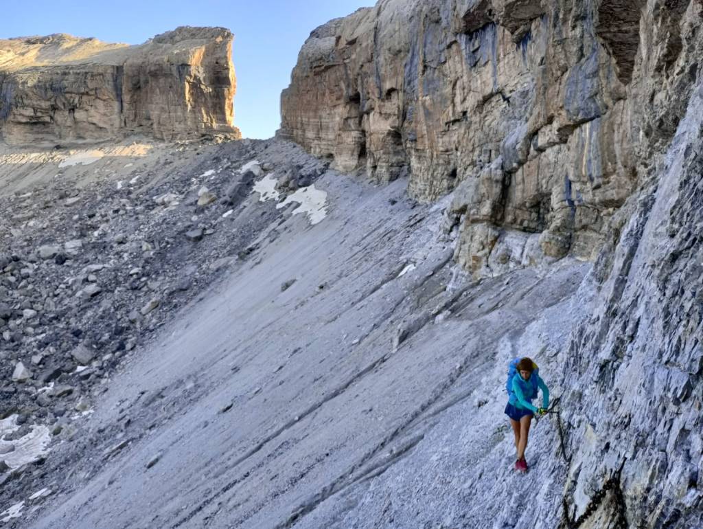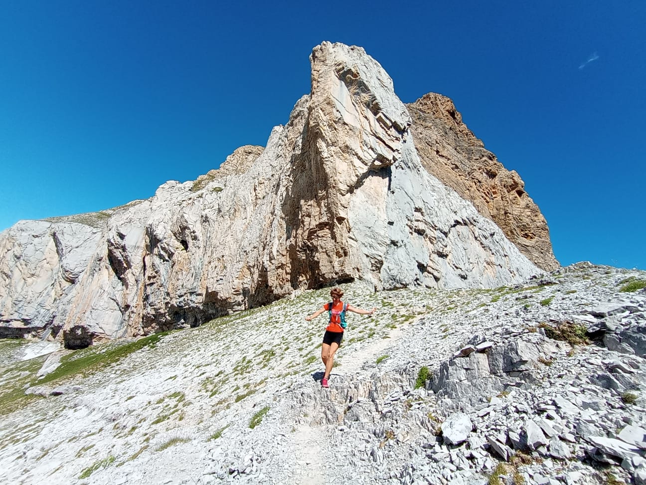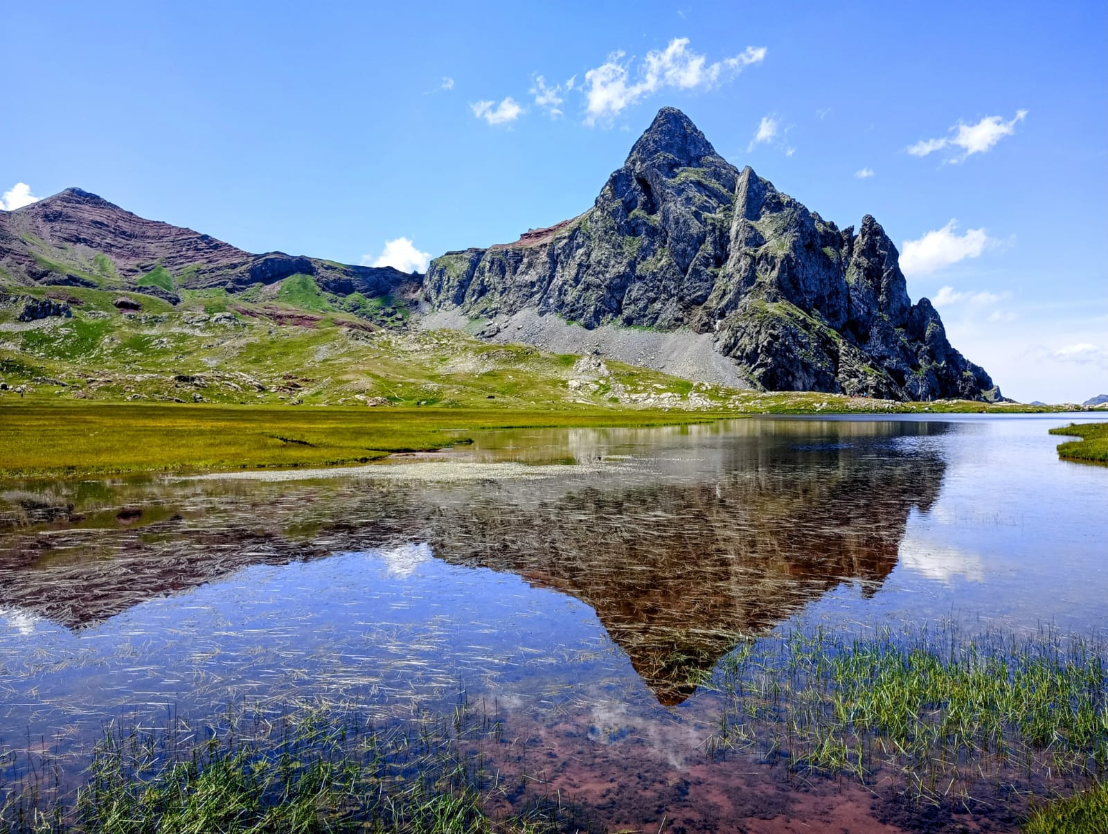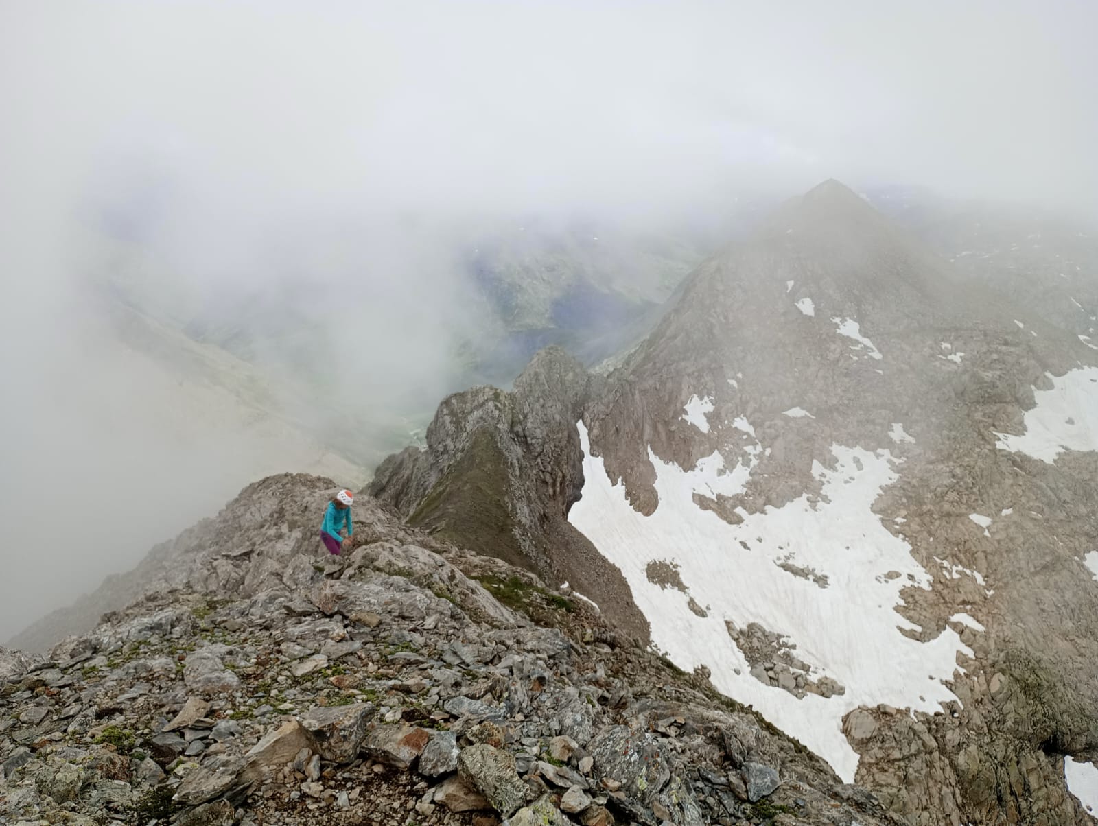 Las lluvias abundantes de junio aliviaron de forma puntual la intensa sequía que las montañas del Prepirineo y del propio Pirineo habían sufrido durante una prácticamente inexistente primavera. Llegamos a las faldas del Aspe (2645m) desde Aísa, al día siguiente de la última gran tormenta de junio. La tierra no puede acumular más humedad y los pastos reflejan un verde casi asturiano en el que las senderuelas dibujan trazados alargados. La preciosa ascensión al Aspe, la cumbre más occidental que ascenderemos esta vez, será una introducción a las dosis de belleza que experimentaremos después. Tras el Aspe, al día siguiente, otro coloso calizo como la Collarada (2886m), con su tremendo desnivel desde Vilanúa, será un buen ejercicio de prueba para nuestras piernas. Ascendemos a un ritmo de unos 600m positivos por hora y para el tiempo de comer ya hemos bajado y nos hemos dado un chapuzón bajo el puente que todavía hoy soporta al “canfranero”, el tren de vía estrecha que se adentra en el valle del río Aragón. Además, en el mismo Canfranc probamos la caliza del valle escalando en el sector de Meses, un lugar mágico con sombra de tarde.