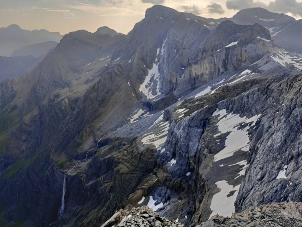 La ocasión se presentará un par de semanas más tarde cuando regresamos, esta vez por el valle de Pineta, para subir al Robiñera (3001m) y al día siguiente meternos los 2.500 metros positivos subiendo a la Espalda de Esparets (3078m), el Baudrimont NW (3045), el pico Añisclo (3259m), el Baudrimont SE (3026m) y la Punta de las Olas (3002m), en una ruta circular a través del collado de Añisclo muy dura para las rodillas. Después de esta sesión de cumbres, casi siempre bañadas en prístinas pozas por las tardes, decidimos dedicar el último día a realizar una ruta más corta para acercarnos a las cascadas del valle de Pineta: las del Cinca y las de La Larri.