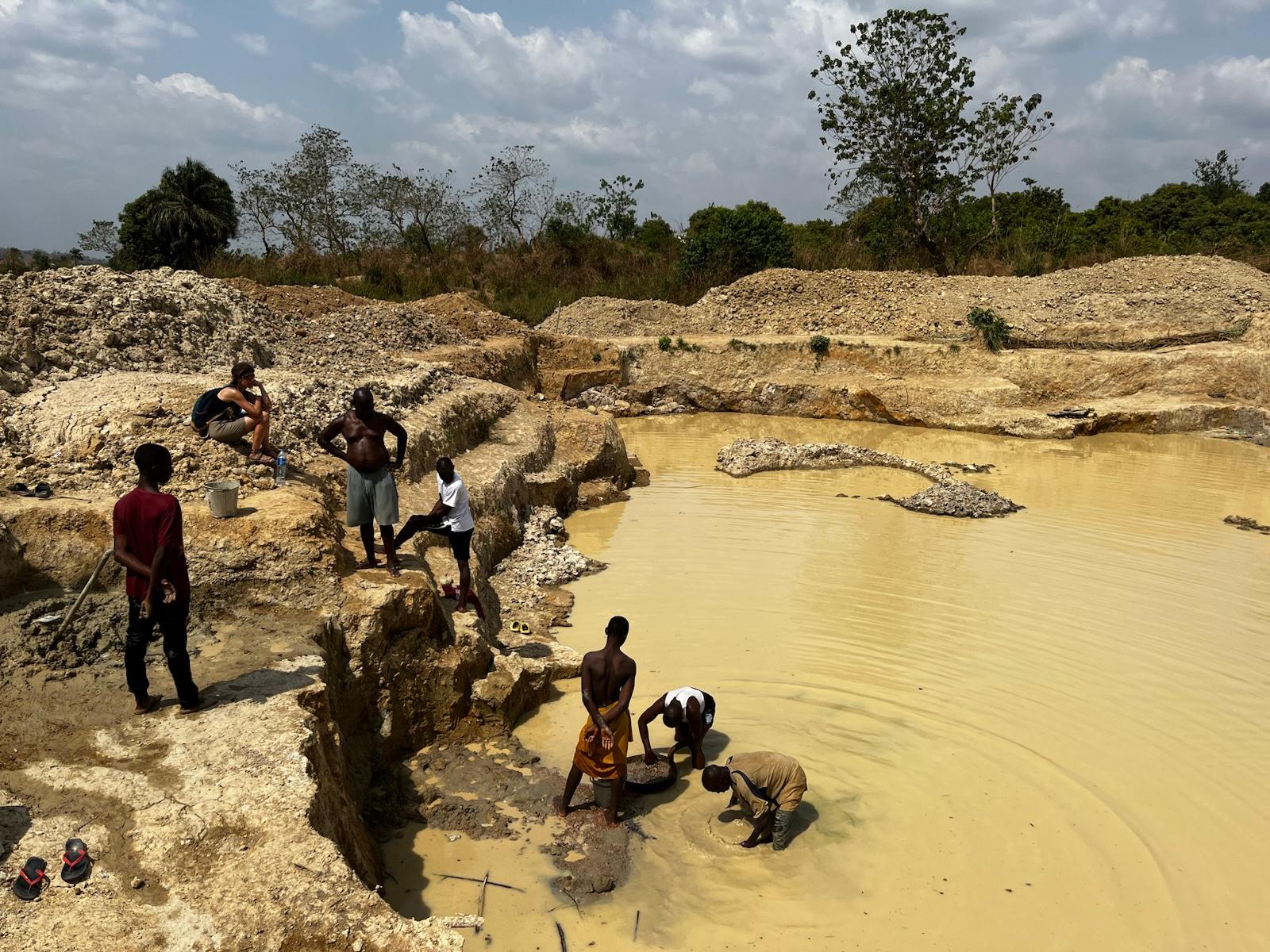 En compañía de uno de los profesores del colegio visitamos una mina artesanal de diamantes cercana a Koidu. Los obreros trabajan por un sueldo mínimo con medio cuerpo en un agua embarrada, bajo la condición de que si encuentran un diamante será compartido con el dueño de la mina. Llevan varias semanas sin encontrar nada. -Antes era fácil, encontrábamos uno y lo vendíamos en la primera tienda para volver a tiempo de encontrar otro. Ahora nos tiramos semanas para encontrar alguno y nos paseamos por todas las tiendas para conseguir el mejor precio; no hay prisa por venderlo. El funcionamiento de las minas es sencillo. Primero se extrae toda la capa de tierra y arcilla, otrora campos de cultivo y huertas, hasta llegar al suelo rocoso. Después se extraen las piedras grandes mientras se bombea el agua, que por el nivel freático comienza a aflorar. Una vez que se llega a la capa de piedras más pequeñas, con platos de madera van cargando emplastes de grava que van lavando en el mismo agua en el que trabajan, así hasta que alguna piedra brillante llame la atención. El dueño de la mina descansa en un cobertizo de hojas de palmera sin perder la atención ni un segundo. Esconderse un diamante significa semanas de tiempo perdido para él. Volvemos al colegio de nuevo y uno de los seminaristas nos enseña cómo se financia los estudios de cura. Trabaja a temporadas en una mina de oro, también en Koidu. -Antes el negocio eran los diamantes, ahora el oro está en máximos y es más seguro, mientras nos enseña una papelina con polvo de oro que sacó durante una semana. Sopla viento y una parte de su oro vuela mientras se desespera por recuperar granito a granito del suelo, lo que tanto esfuerzo le ha costado conseguir.
