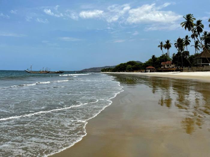 Desde Koidu iremos regresando en dos etapas hasta la capital Freetown, parando previamente en el cruce de caminos que es Makeni. Freetown, la capital del país, es otra península de tierra en la costa, igual que Conakry, Nuadibú y Dajla. Bulliciosa, congestionada y sucia hasta el extremo, visitamos sus mercados y el Museo de la Guerra, donde aprendemos sobre las micro-historias de la guerra, los amuletos que se cosían en la ropa para hacerlos indetectables o inmunes a las balas y toda la magia con la que se manipulaba a sus guerreros, muchos de ellos niños, con los que era casi imposible negociar. Freetown es una península enorme y en la zona menos poblada de la misma todavía quedan playas bonitas en las que darse un chapuzón, como Tokeh, Black Johnson y Bureh beach. En Bureh Beach acampamos en la arena, no sin antes habernos quitado a varios buscavidas que nos intentan cobrar tasas absurdas por estar allí. Cocinamos un plato de pasta con las vistas de un atardecer precioso bajo un cocotero. Mañana será otro día.