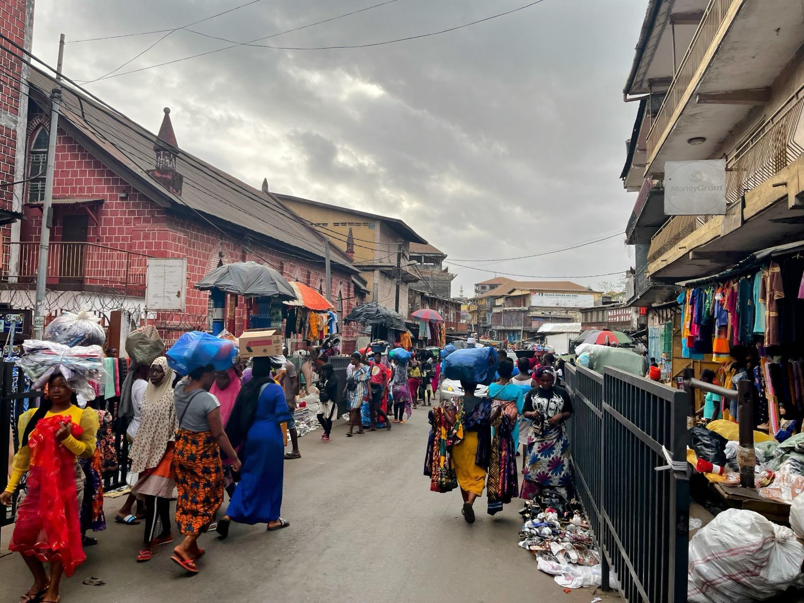 Koidu está llena de tiendas donde se compran y se venden diamantes, antes muy abundantes en los cauces de los ríos. Diamantes por armas y así se financió en buena medida la guerra civil de Sierra Leona. No creo que Koidu sea un sitio turístico. En realidad no hay muchos sitios turísticos a lo largo de esta costa, con la excepción de Senegal. Nos dirigimos a la iglesia de Koidu para intentar encontrar un sitio donde plantar nuestra tienda de campaña. Las monjas que regentan el colegio católico anexo nos ofrecen un aula del colegio, y menos mal, porque esa misma noche caerá el diluvio.