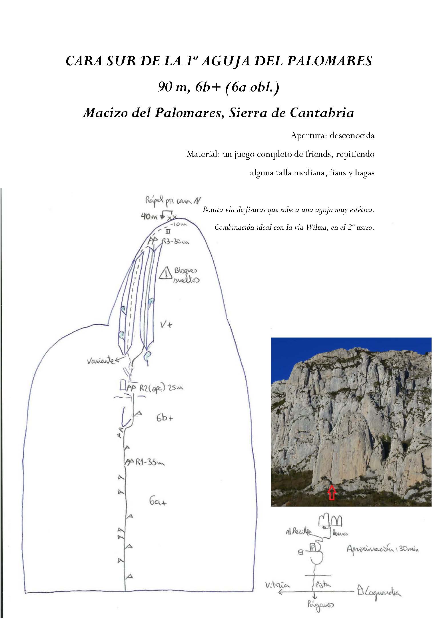«Cara sur de la 1ª aguja del Palomares 90m 6b+ (6a oblig.), Macizo del Palomares, Sierra de Cantabria