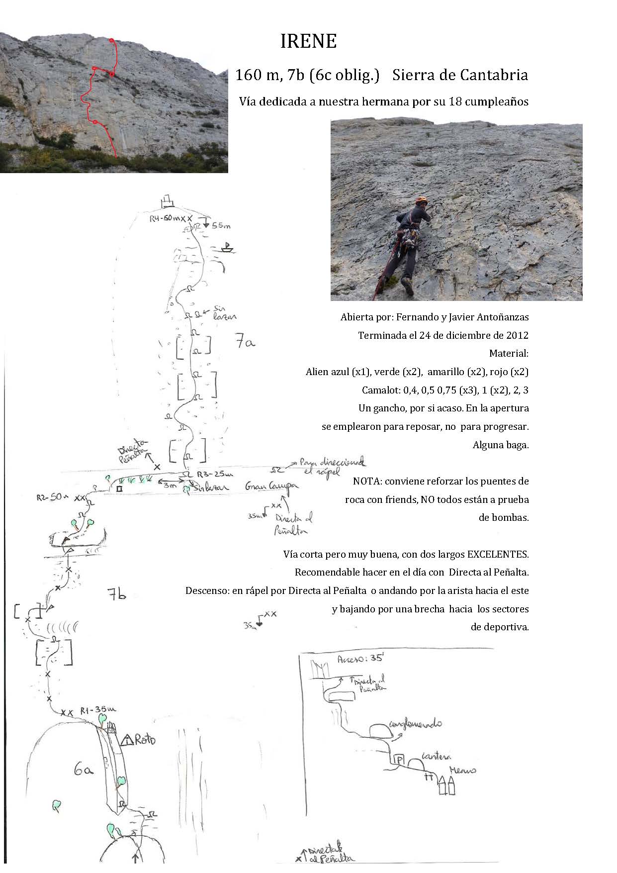 *Excelente combinación cuando se rapele la Irene, escalar el último largo de la vía Directa al Peñalta, que junto con el último largo de la Irene es si duda de los mejores largos de la Sierra!