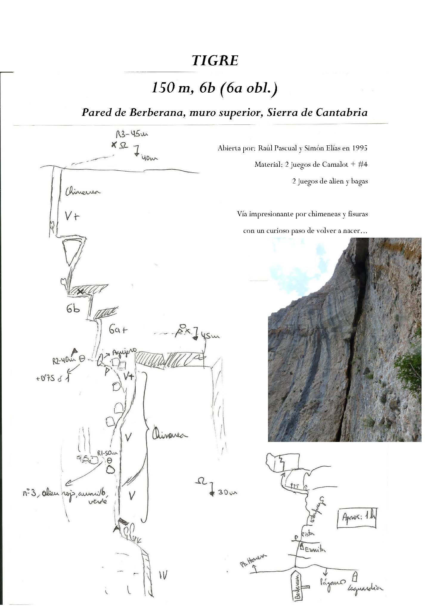 «Tigre» 150m 6b (6a oblig.), Pared de Berberana, muro superior, Sierra de Cantabria